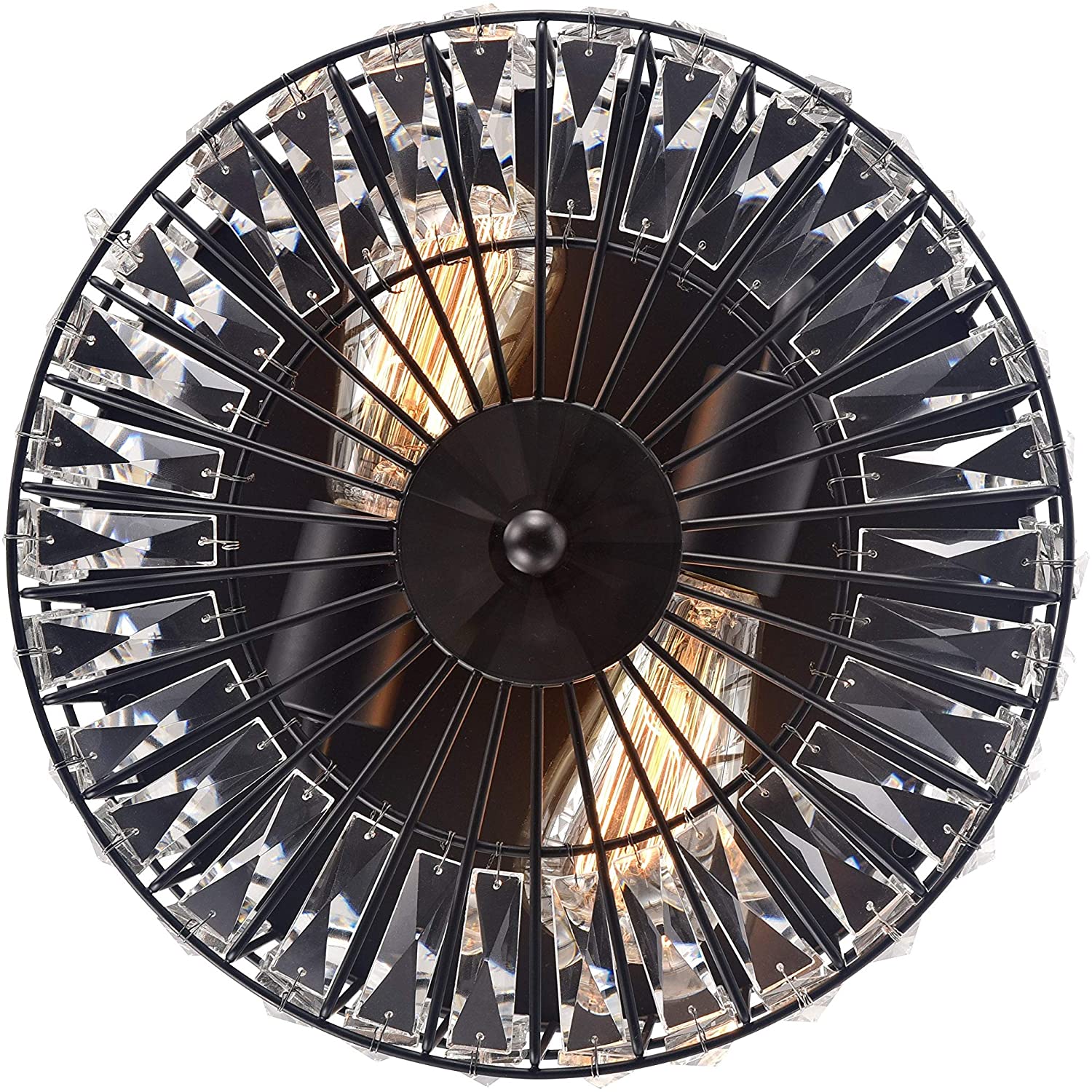 2 Light Crystal Glass Flush Mount Chandelier Black Glam Modern