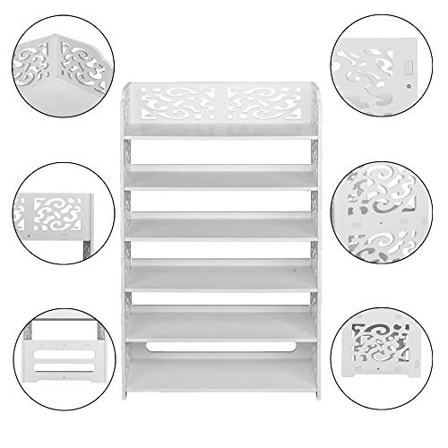 6 Tier Carved Storage Organizer Standing Shoe Rack Shelf Cabinet White Wood | Made of high quality wood-plastic board, smooth, sturdy and beautiful. It has a long service time, durable in use. Beautiful hollow design, can coordinate with any style of decoration. Material : Wood. Assembly : Assembly Required. Color : White. Commercial : Yes | Product Size: 24.21 In. L X 9.45 In. W X 37.99 In. H.