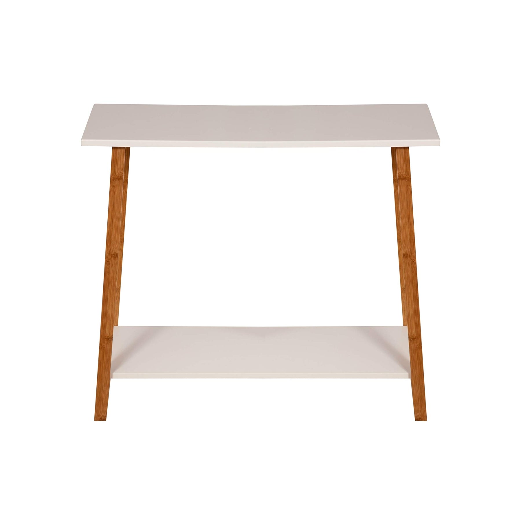 2 Tier Solid Bamboo Frame Console Table White Modern Contemporary