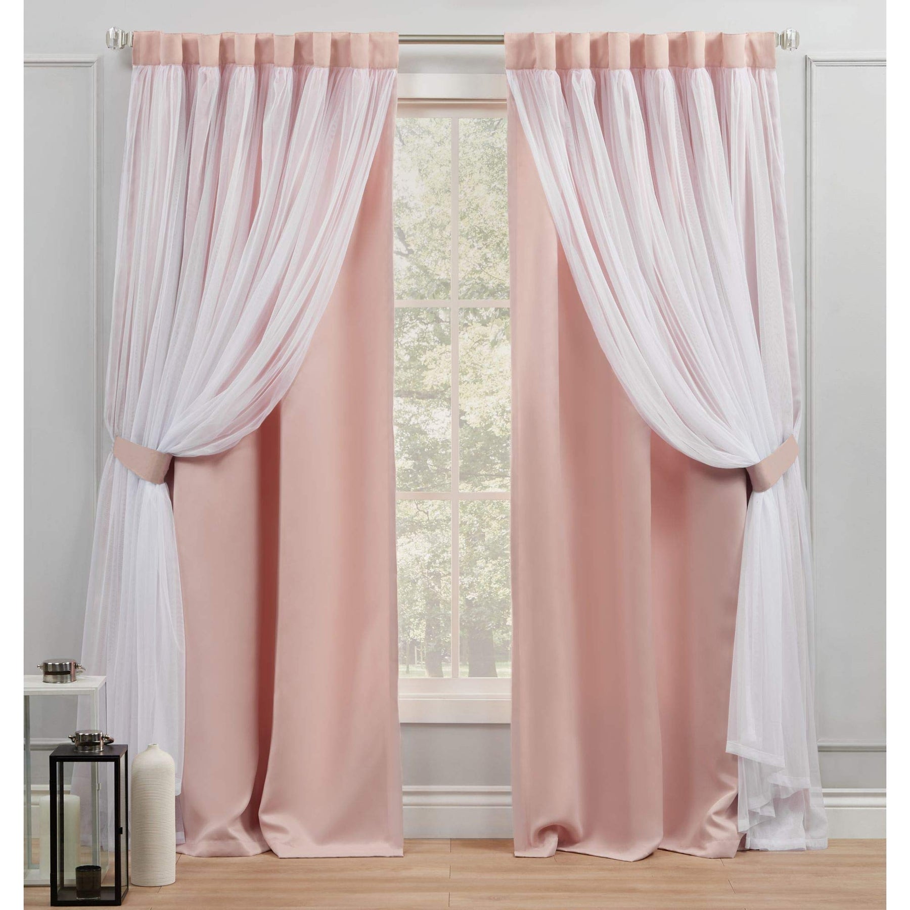 ELEGANT: The Catarina curtain panels offer both the function of a sateen woven room darkening blackout curtain paired with the fashion of a sewn in sheer panel for layered sophistication | ROOM DARKENING OPACITY: room darkening opacity is designed for light control and privacy. | 3 HANGING OPTIONS: Drape these curtain panels (1) from the rod pocket for a classic look, (2) using the hidden tabs to create an elegant pleated effect, or (3) using clip rings for easy, slide open and closed (clip rings are not included). Fits up to 1.5" diameter rod. | SET OF TWO CURTAIN PANELS: Includes two (2) curtain panels, each measuring 52"W x 84"L. | MULTIPLE STYLING OPTIONS: The Catarina curtain panels haved a sophisicated layered look that offers multiple styling methods that will enhance your décor.