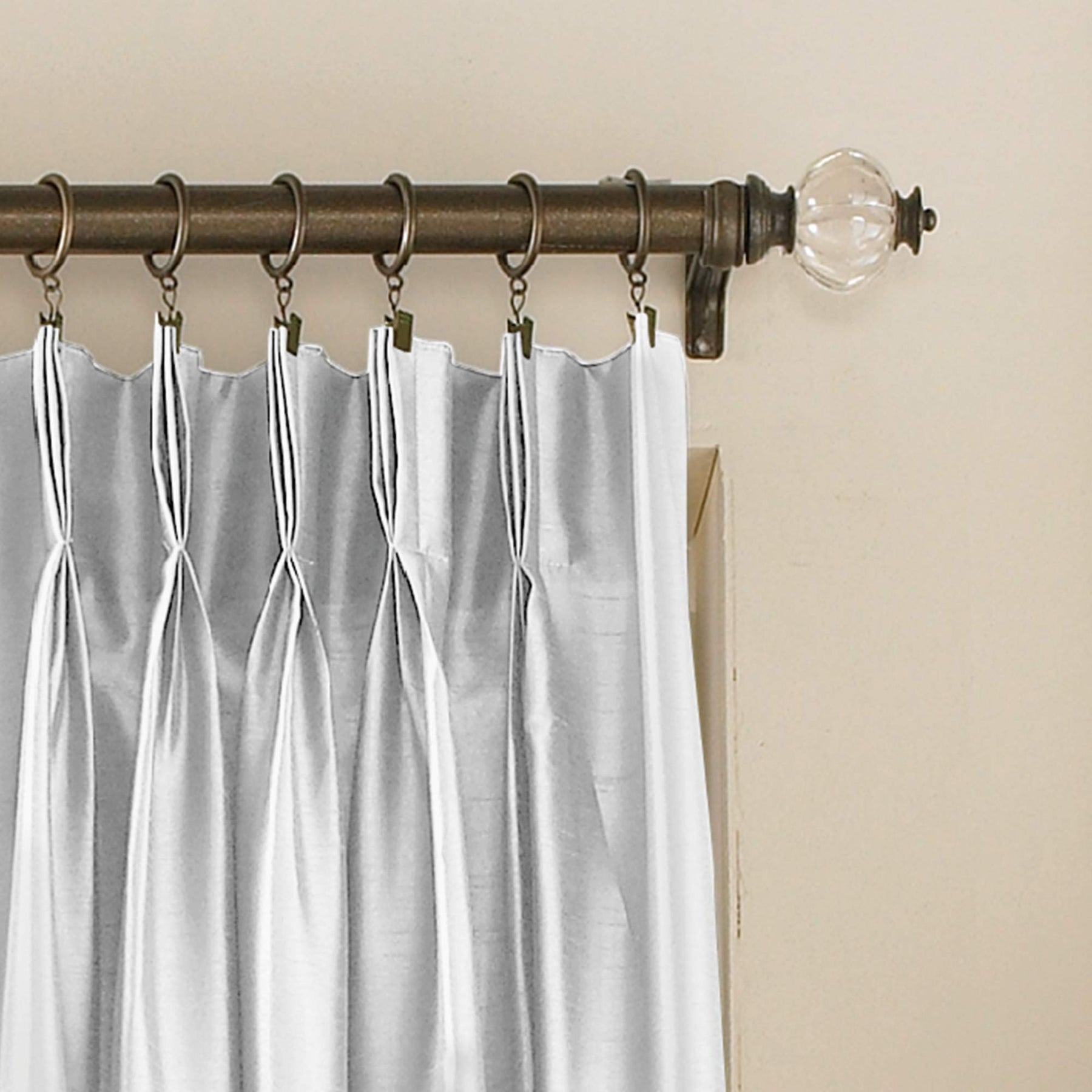 Panel is constructed of a lovely faux silk fabric with subtle shimmer and all-over textured ground.Lined solid-color drapery features a pinch-pleat construction and can be hung on a standard or traverse rod using clip rings or drapery hooks. Panel also features hidden, 4-inch wide back tabs for use with a standard or decorative drapery rod.Each panel is 30 inches wide; use multiple panels to cover wider windows, add fullness, or to create a gathered appearance. Panel is sold individually.