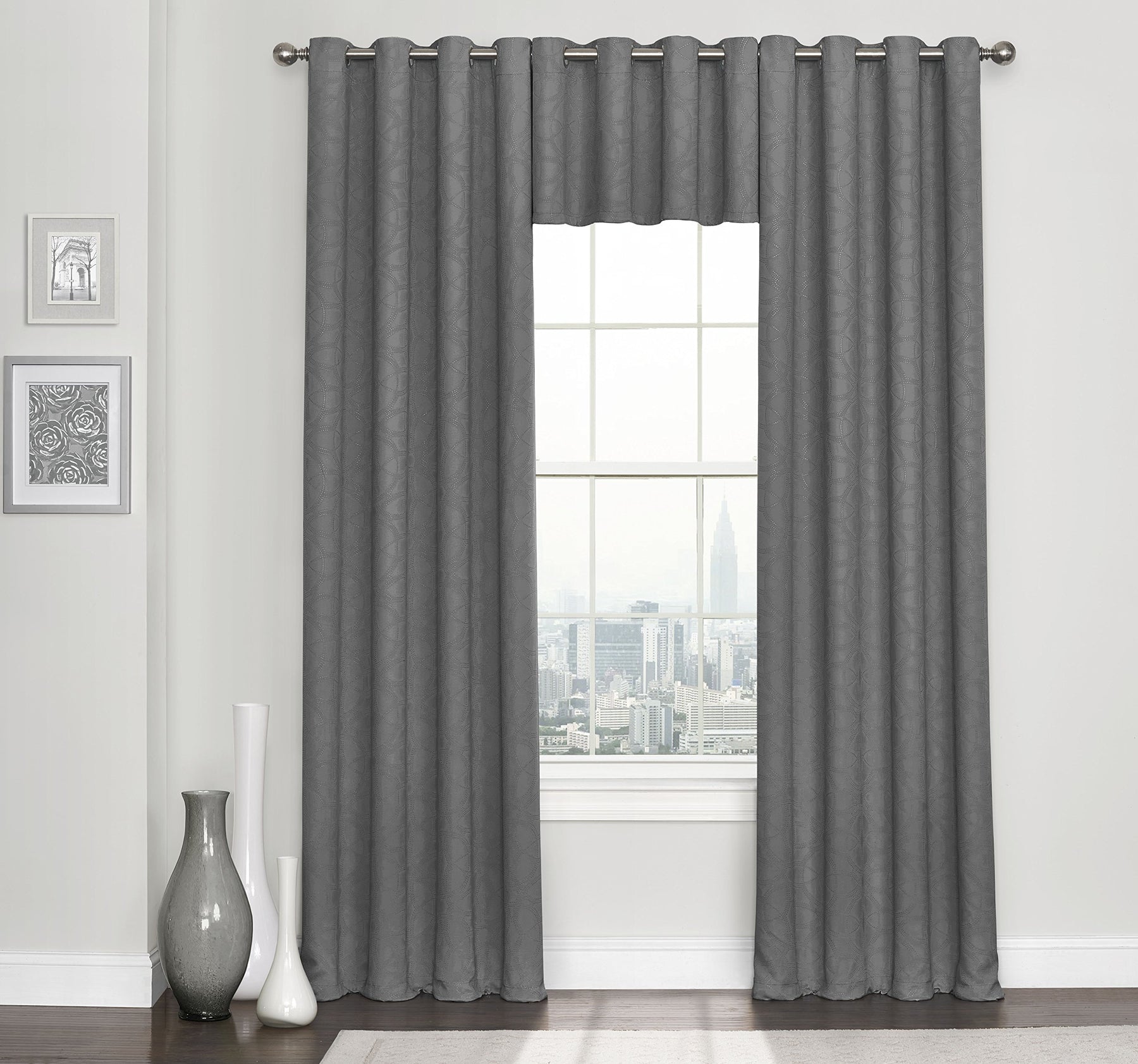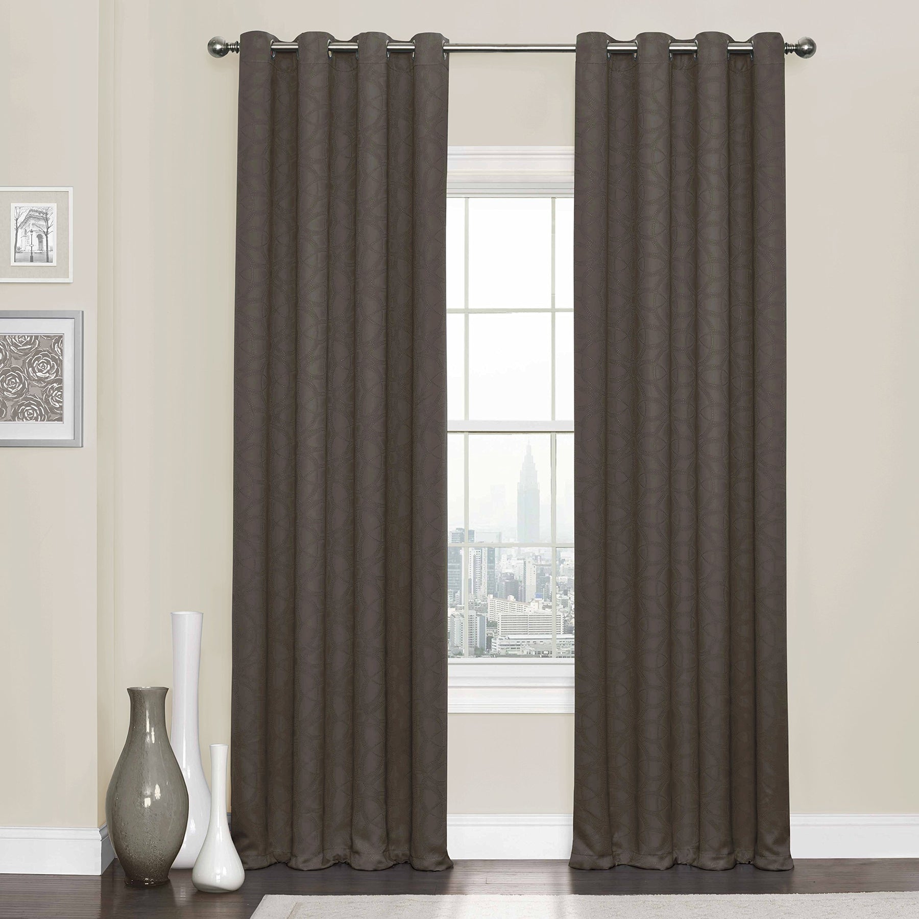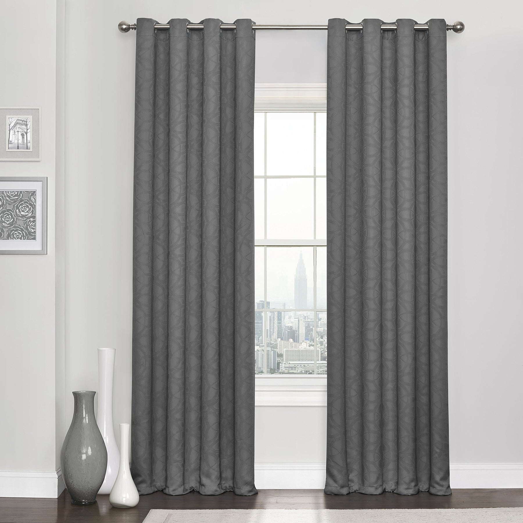Find the perfect combination of fashion and function with Eclipse Kingston blackout curtains. Eclipse offers a complete line of functional curtains that provide privacy, manage light, reduce noise, and help with energy savings, without sacrificing the latest looks in window fashion. These beautiful panels offer blackout benefits and features an embossed circular geometric motif. Blackout yarns are intricately woven into the panel giving it a rich hand and luxurious drapability. Each panel measures 52 inches wide in your choice of 63, 84, 95, or 108 inches long. 1.65 inch brushed nickel grommets are recommended with a 1 inch rod for maximum movement. Curtain rod sold separately. 100Percent polyester, unlined panel. Machine washable.