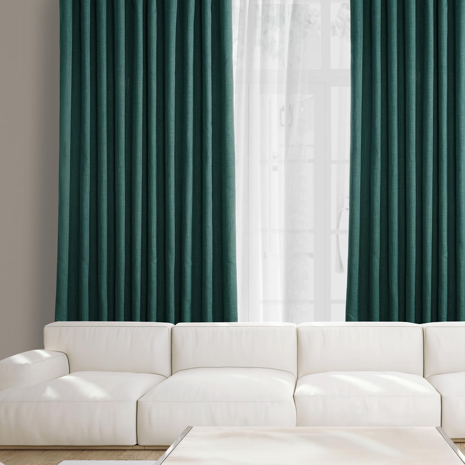 HPD Half Price Drapes Faux Linen Room Darkening Curtains - 84 Inches Long 100 X 84 - Slate Teal