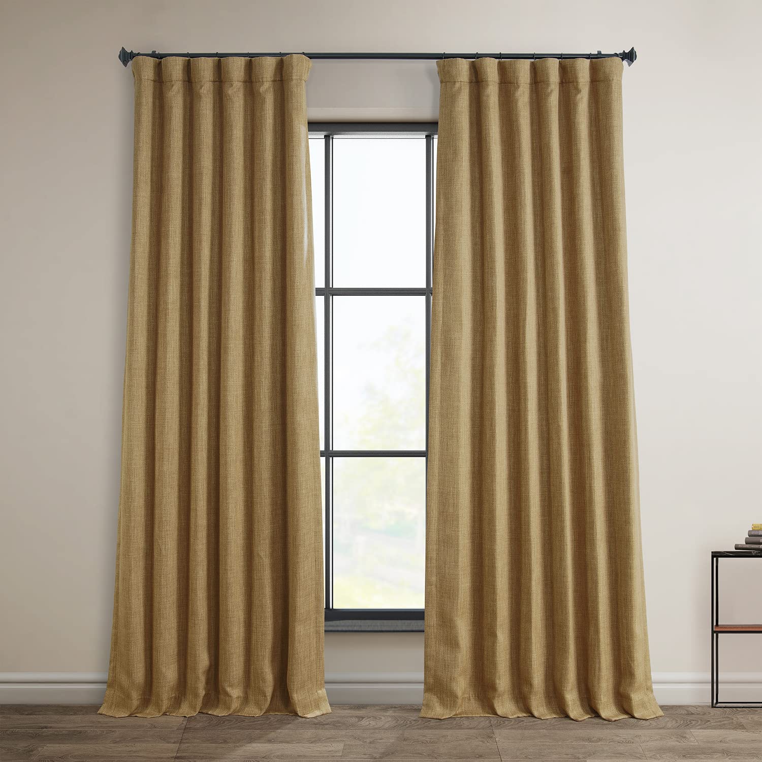 HPD Half Price Drapes Faux Linen Room Darkening Curtains - 108 Inches Long 50 X 108 - Butterscotch