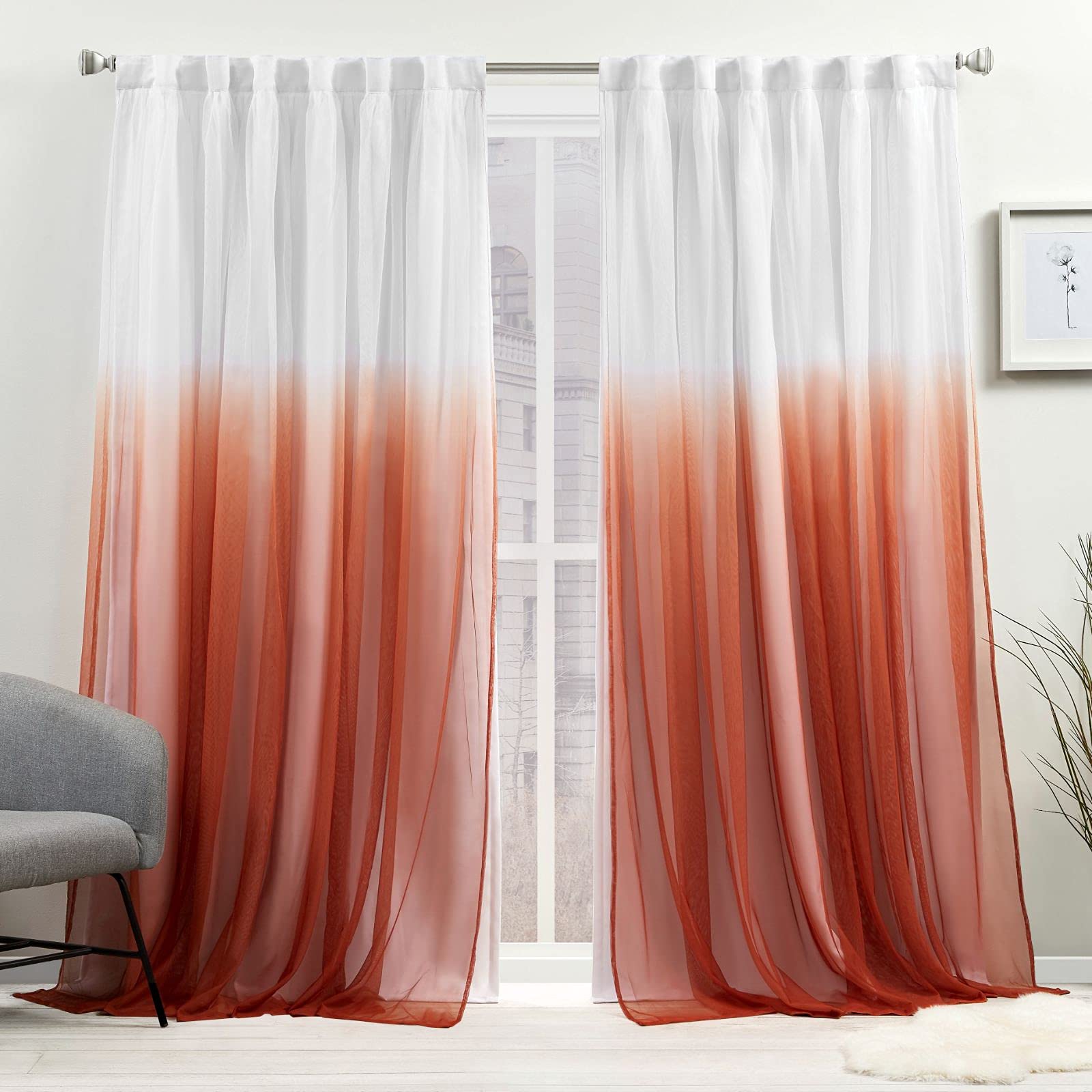 Dress up your windows with the Crescendo room darkening blackout curtain panels by Exclusive Home. Elegantly designed with a sateen woven blackout liner paired with an ombre sheer overlay, this curtain panel set offers multiple styling options for any space. Designed with Woven Thermax technology liner, they will block light, provide privacy and is energy efficient. They can be hung three ways: on a curtain rod up to 1.5" diameter using tabs, the rod pocket, or using clip rings (not included).