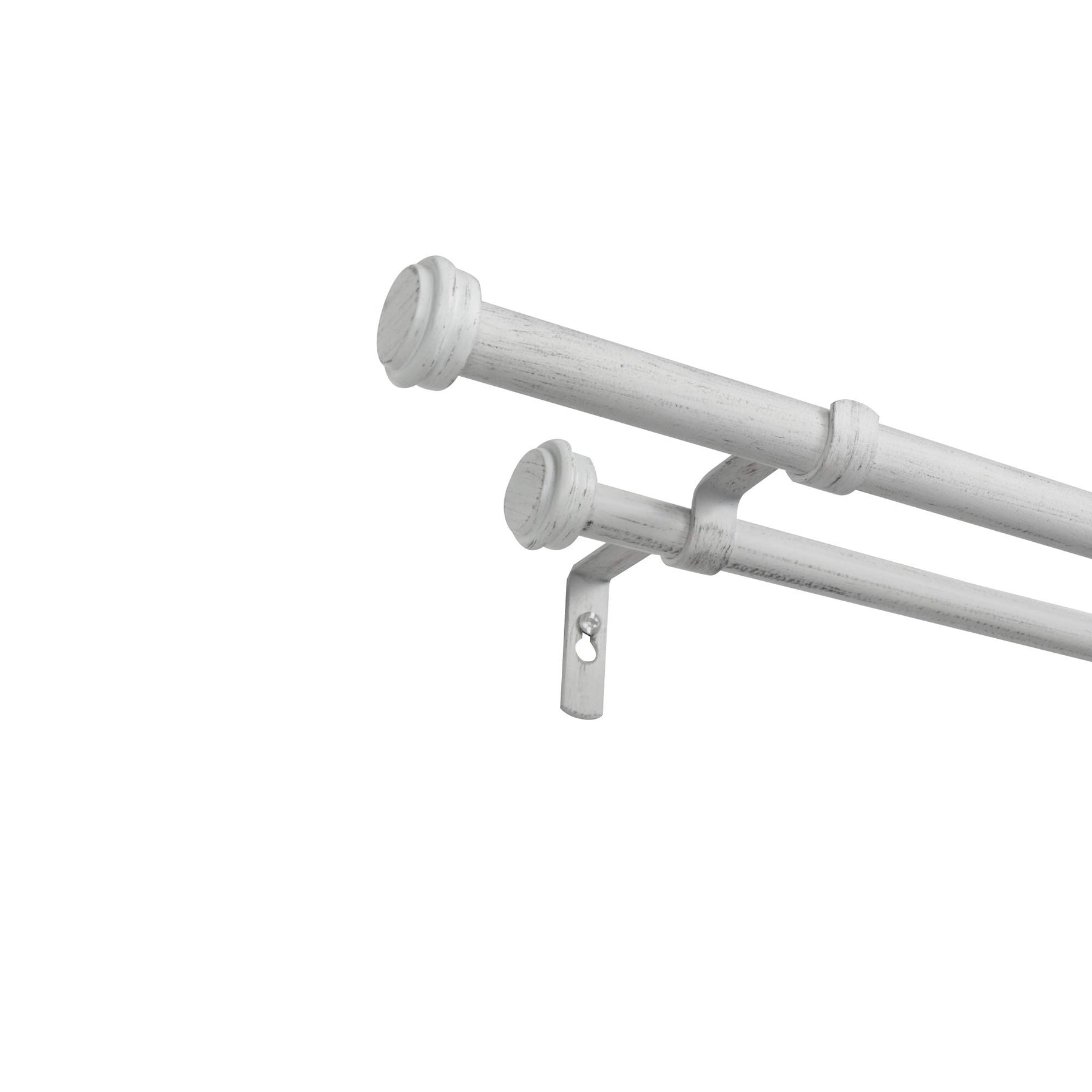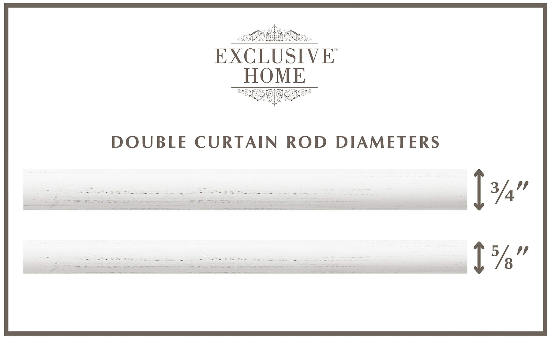 CLASSIC STYLE: The Exclusive Home Topper double curtain rod and finial set offers simple, classic style for your window decor in a durable iron construction. | INCLUDED IN THIS SET: Two (2) adjustable rods in three pieces each, four (4) finials, three (3) fixed 6” depth projection brackets and installation hardware with instructions. | ADJUSTABLE DESIGN: This double curtain rod is adjustable in length and extends from 66 to 120 inches. It will accommodate a wide range of window widths and types. | FLAT FINIALS: The 1.6" diameter flat, button end cap finials offer a simple yet sophisticated look. | STURDY IRON: The sturdy double iron rods measure 3/4" diameter (front) and 5/8" diameter (back). Use them to hang various fabrics and drapes including drapes with a grommet top, rod pocket, and back tabs. They can support heavier fabrics up to 25 lbs.