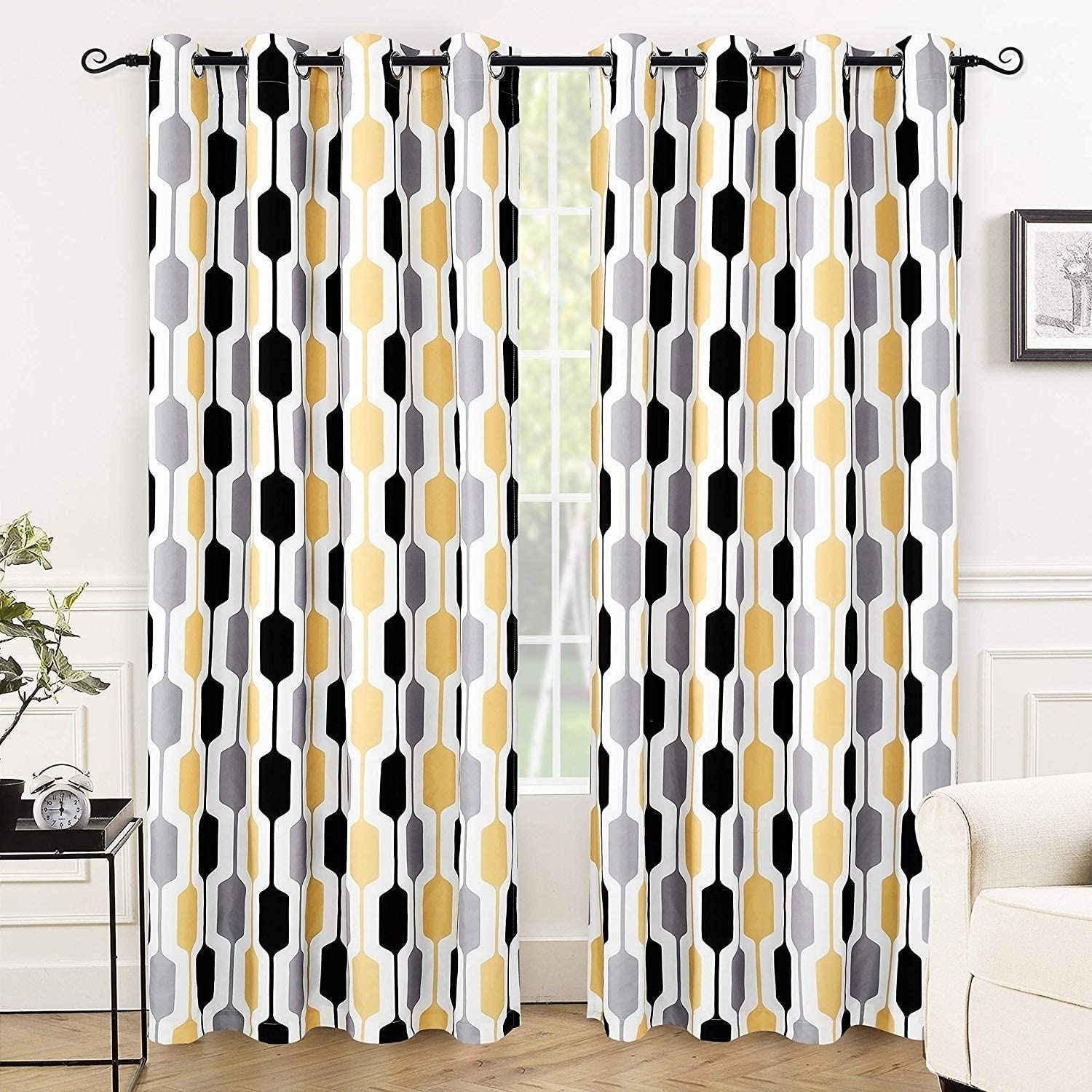Pattern Mid Century Lined Blackout Grommet Window Curtain Panel Pair