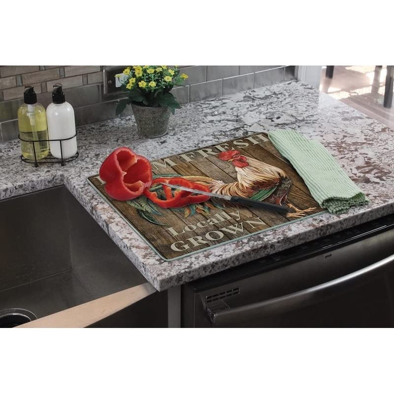 Farm Fresh Rooster 3mm Heat Tempered Glass Cutting Board 15"