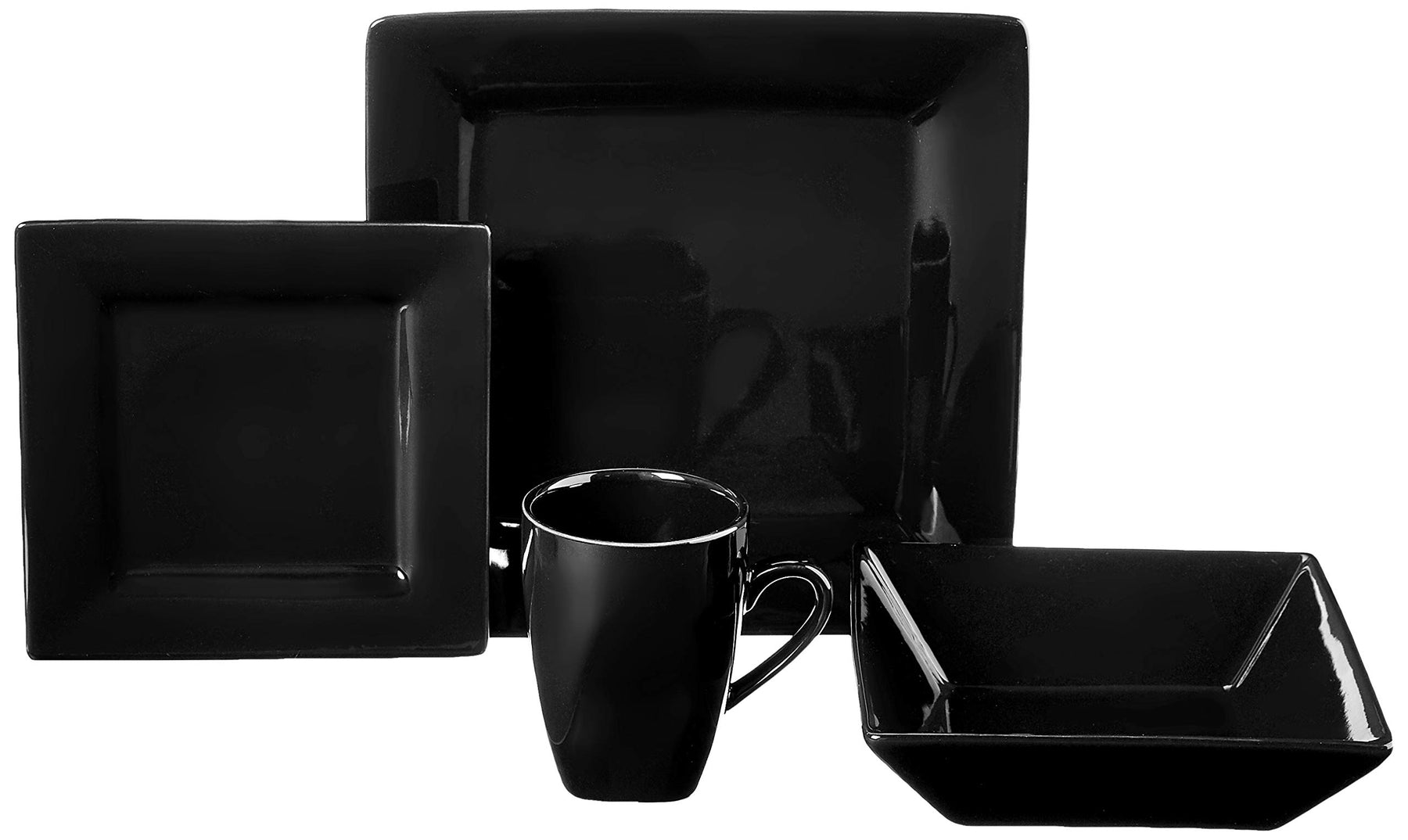 10 Strawberry Street Nova Square 16 pc Dinnerware Set Black - Diamond Home USA
