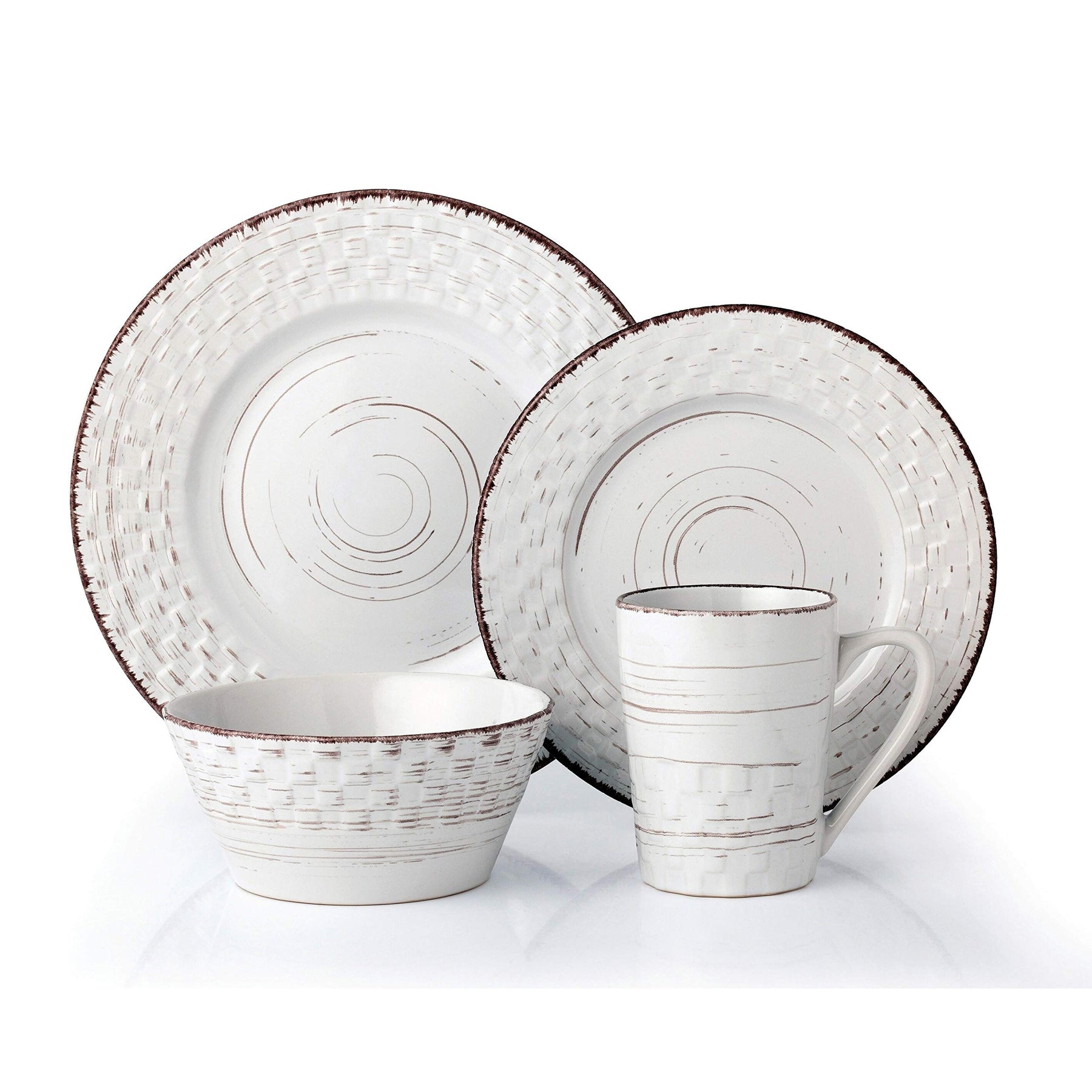 Home 16 Piece Distressed Weave Dinnerware Set-White White Solid Casual Farmhouse Stoneware Microwave Safe