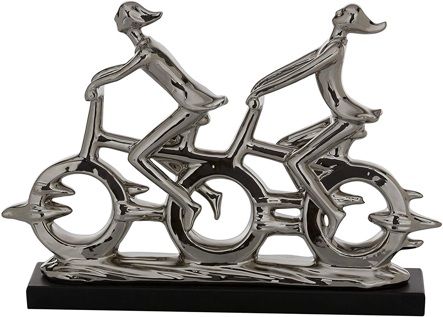 Silver Ceramic Tandem Cyclists Sculpture 18 X 3 13 - Diamond Home USA