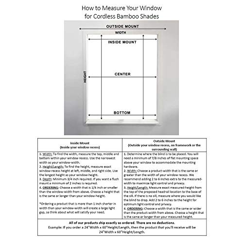 33.5 X 60 Bamboo Blinds Wood Window Shade Cordless Lift