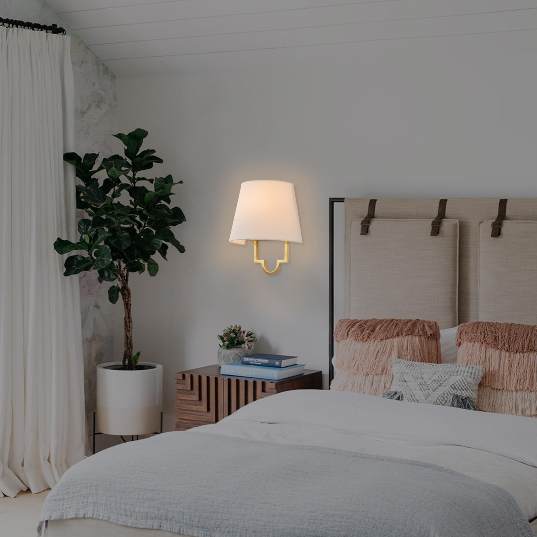 1-light Gold Hardwired and Plug-in Dimmable Fabric Wall Sconce White
