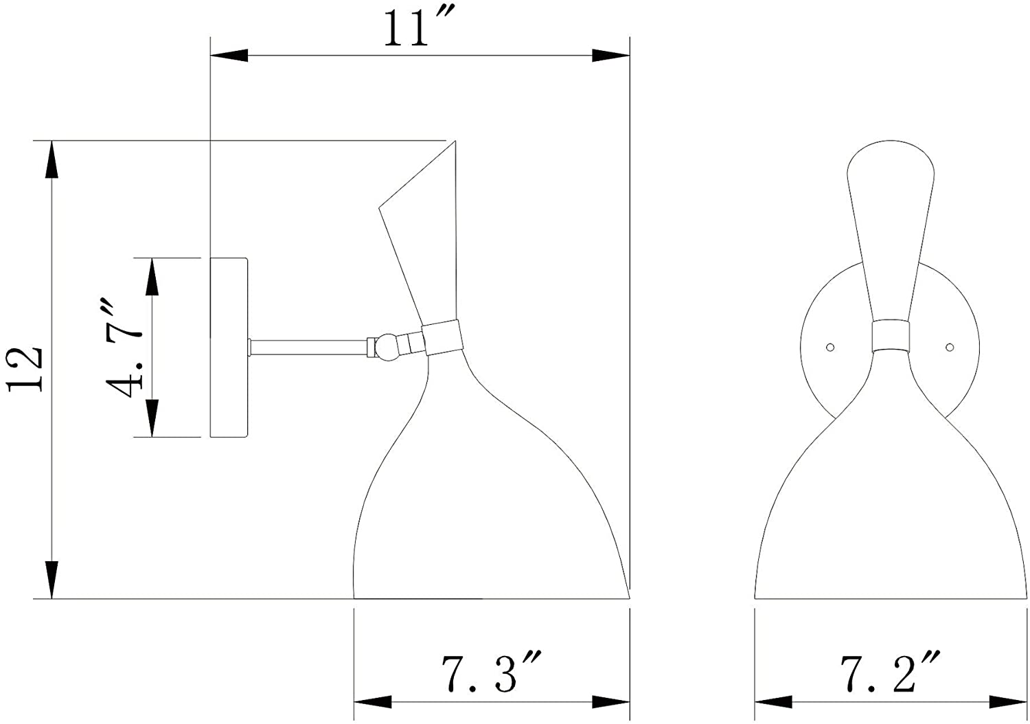 Matte Black Gold 1 Light Wall Sconce Metal Cone Shade