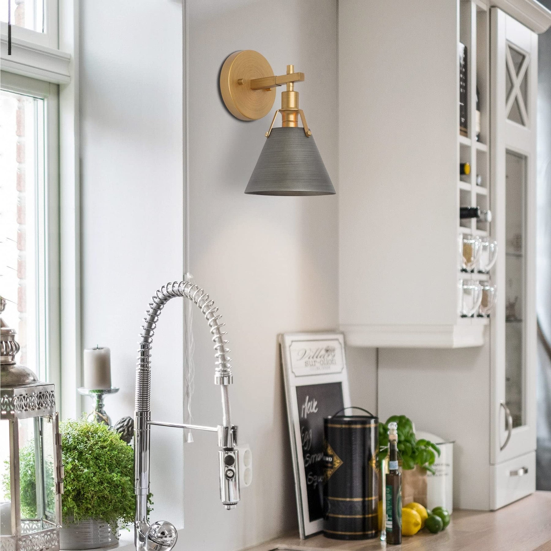 Modern 1-light Wall Sconces Silver Metal Cage for Powder Room