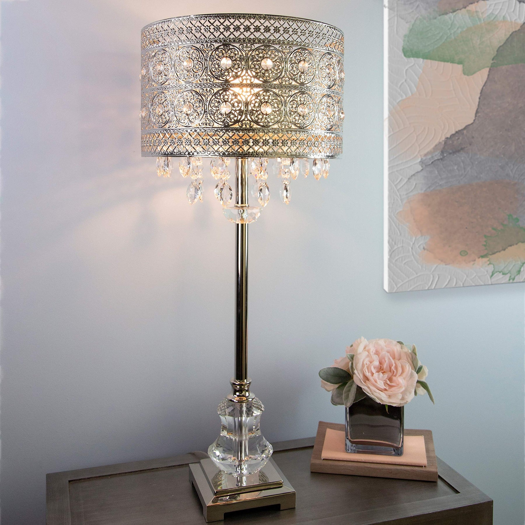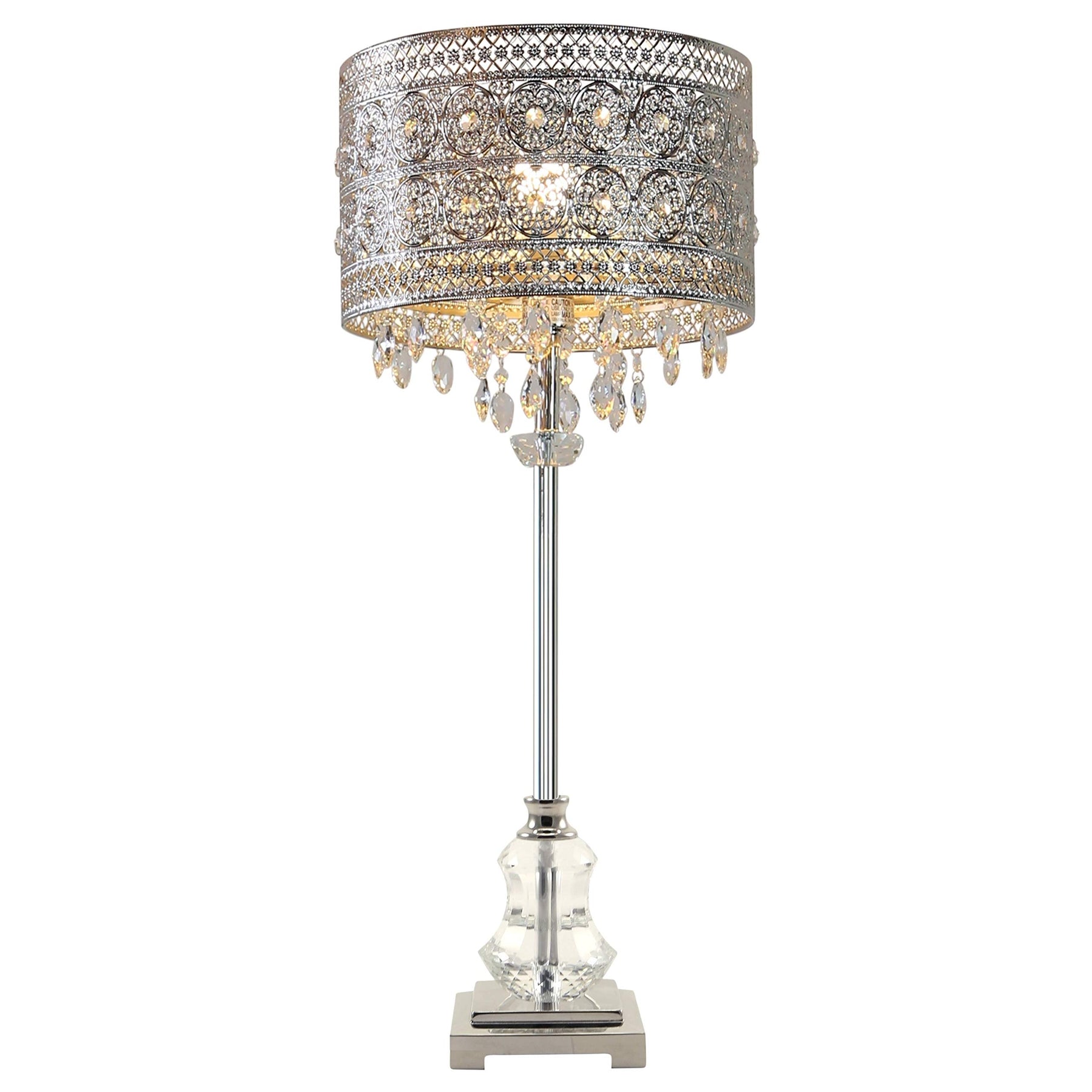 Polished Nickel and Crystal 1-Light Buffet Table Lamp - 12.2"