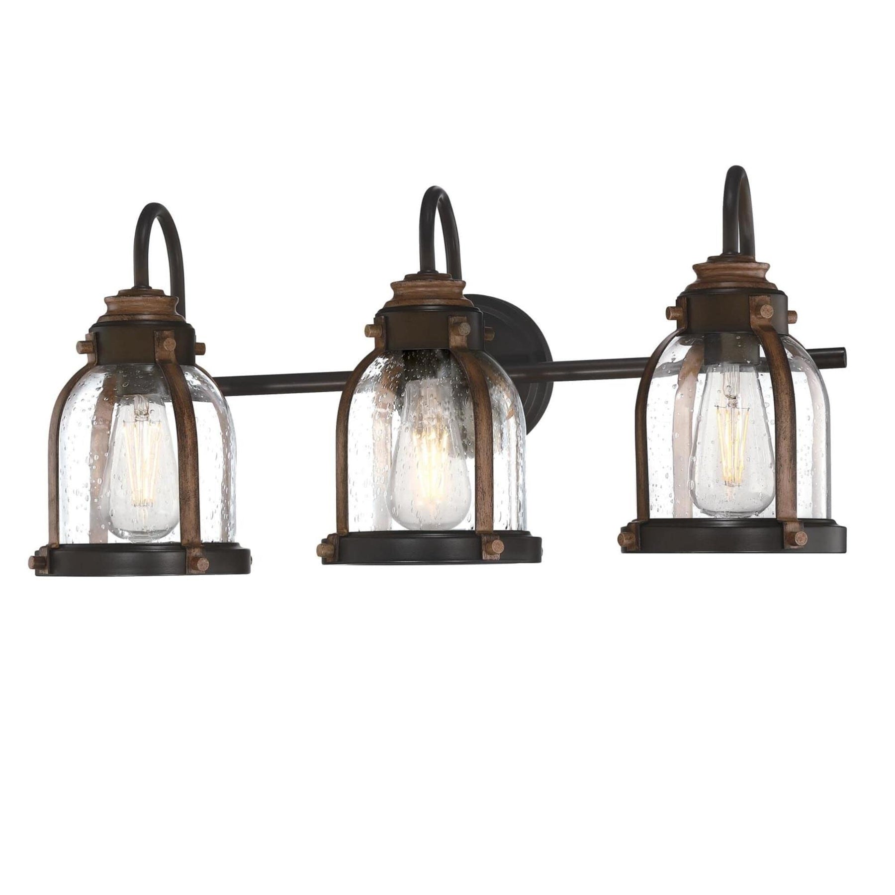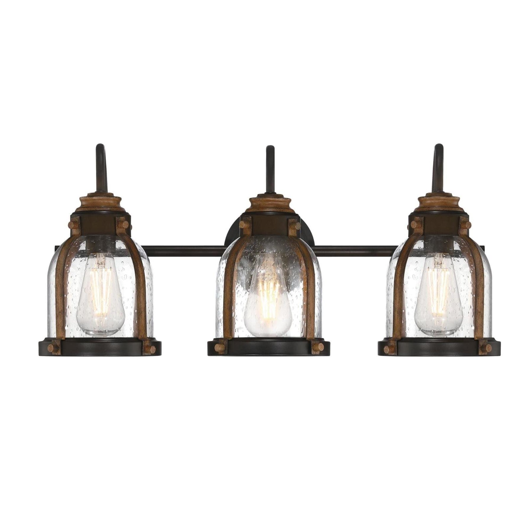 Three-light Oil-rubbed Bronze and Barnwood Indoor Wall Fixture Brown Farmhouse