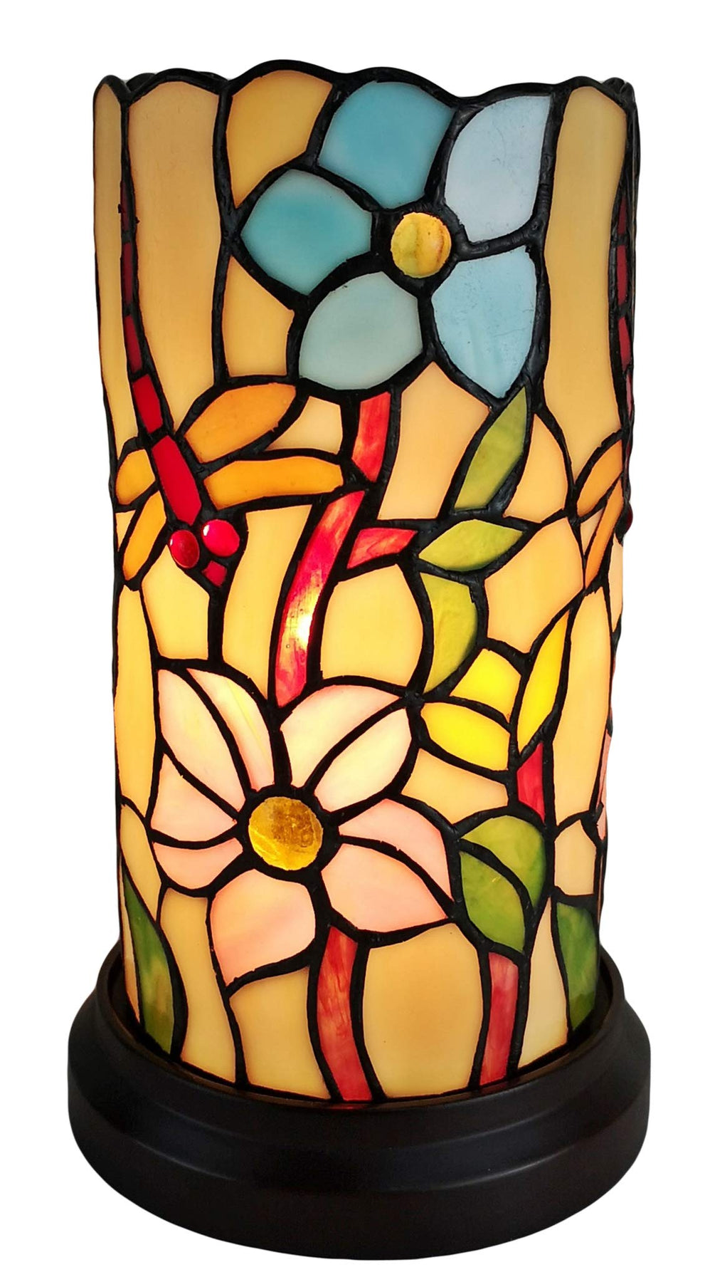 Tiffany Style Accent Lamp 10" Tall Stained Glass White Yellow