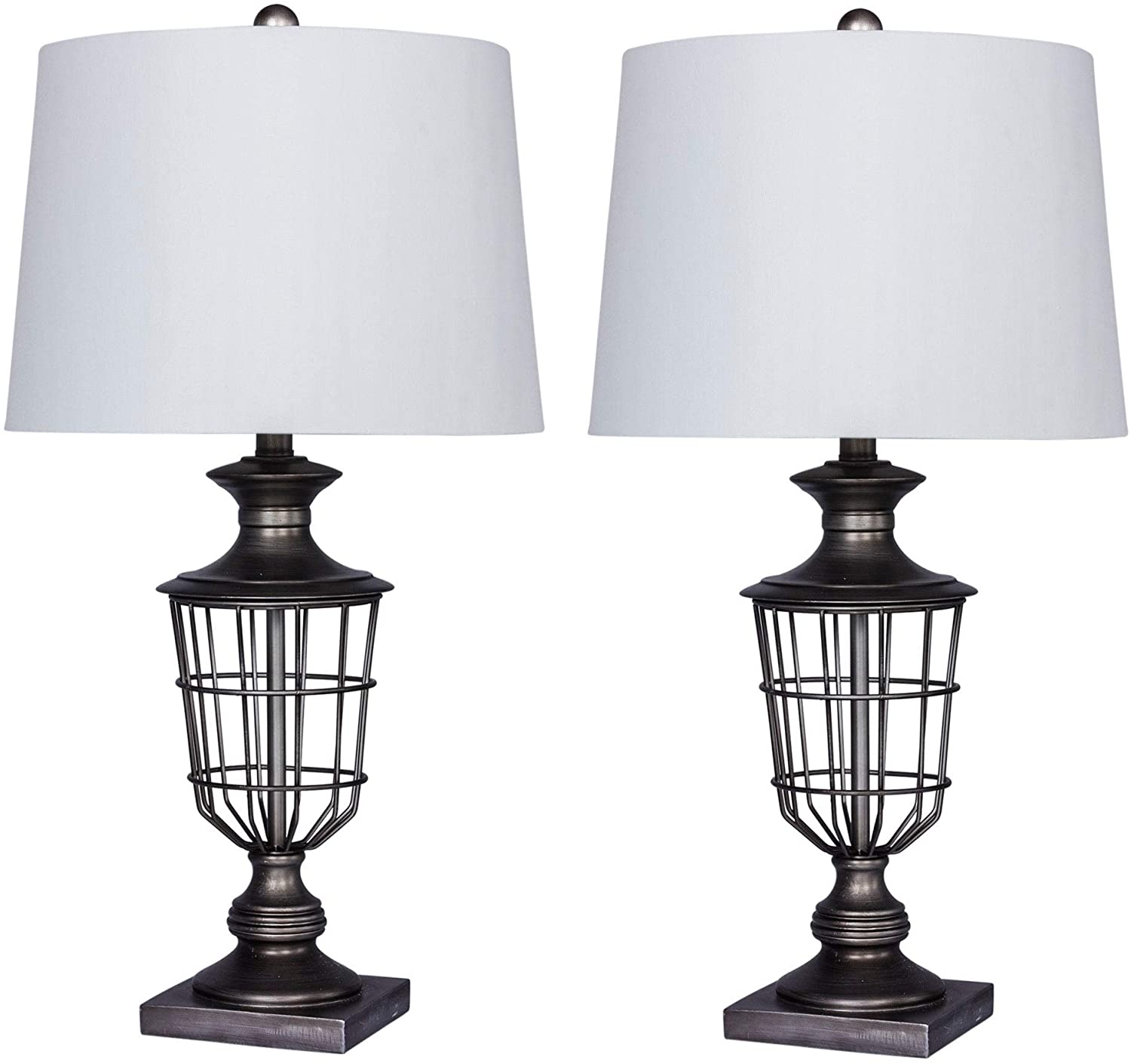 Pair 28 Antique Silver Cage Table Lamps Transitional