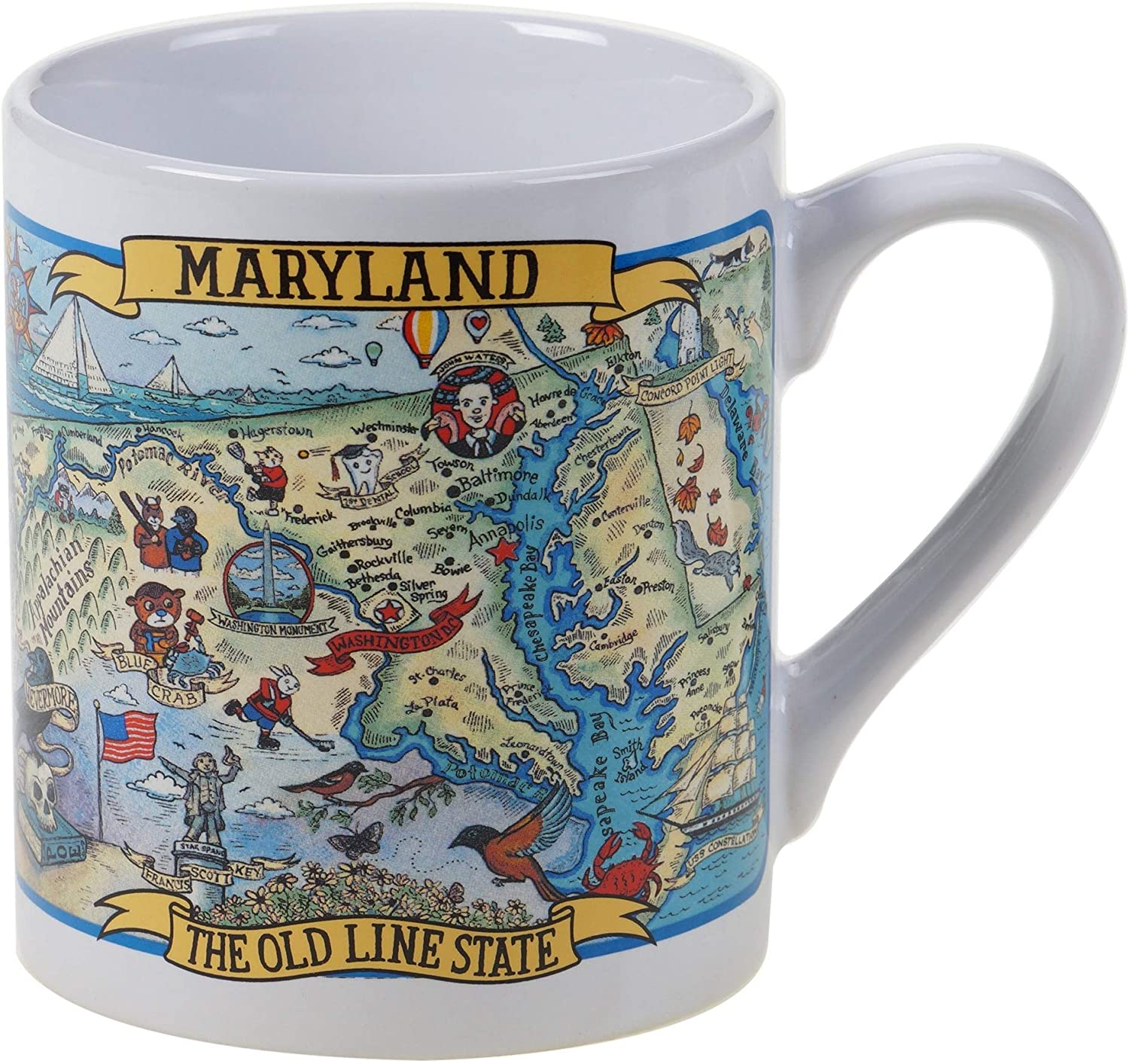 • Maryland Souvenir 20 Oz. Jumbo Mugs (Set Of 6) Blue Multi Color White Coastal Nautical Round Stoneware 6 Piece Dishwasher Safe