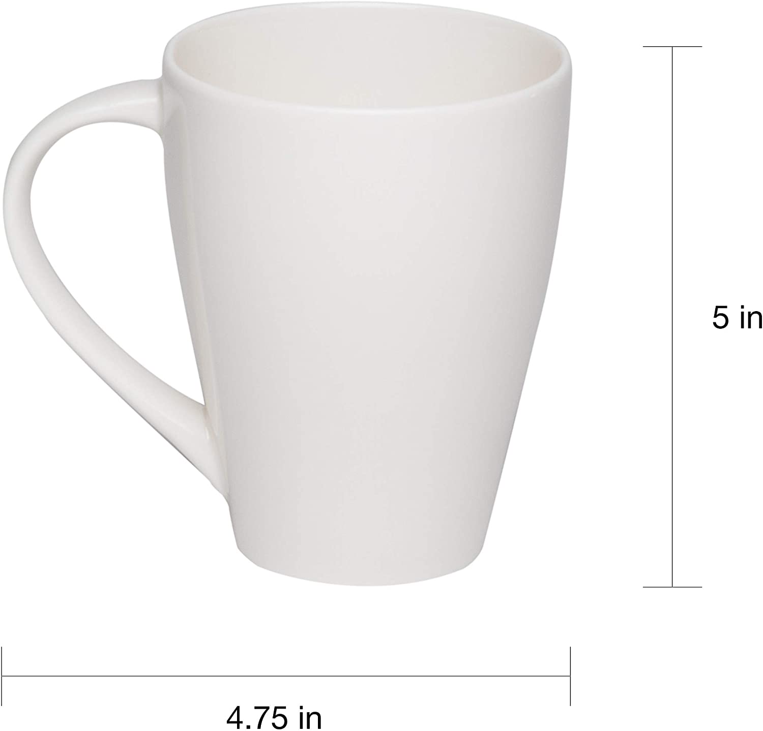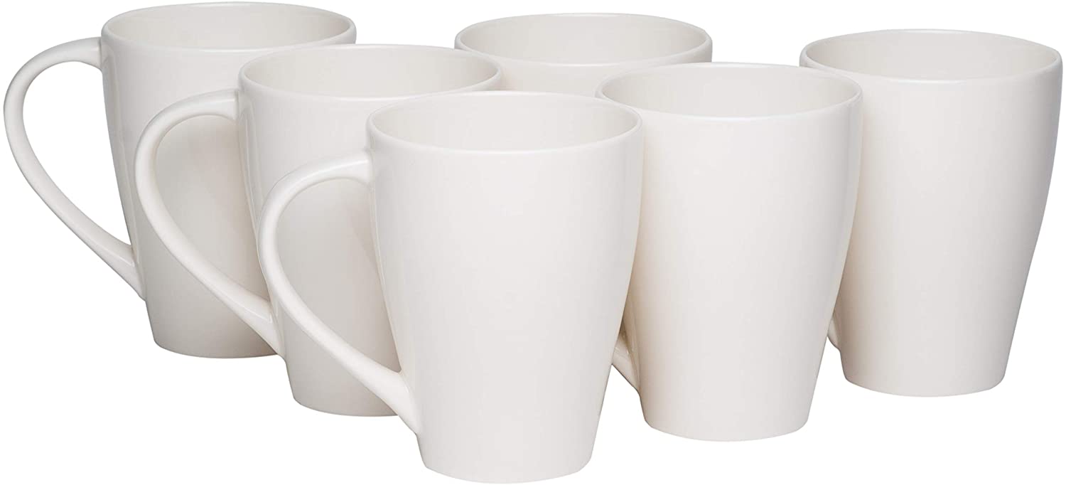 • Dimensions: 5 inches x 4.75 inches, Style : Casual, Modern & Contemporary. Material : Porcelain. Type : Coffee Mug. Pattern : Solid. Care instruction : Dishwasher Safe. Season or holiday : All Seasons.Product Color: White. Product features : Dishwasher Safe, Microwave Safe. Set includes : 6 Piece. Shape : Round.