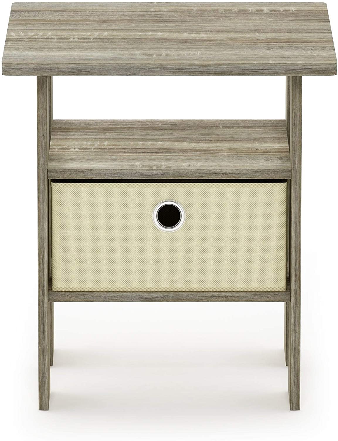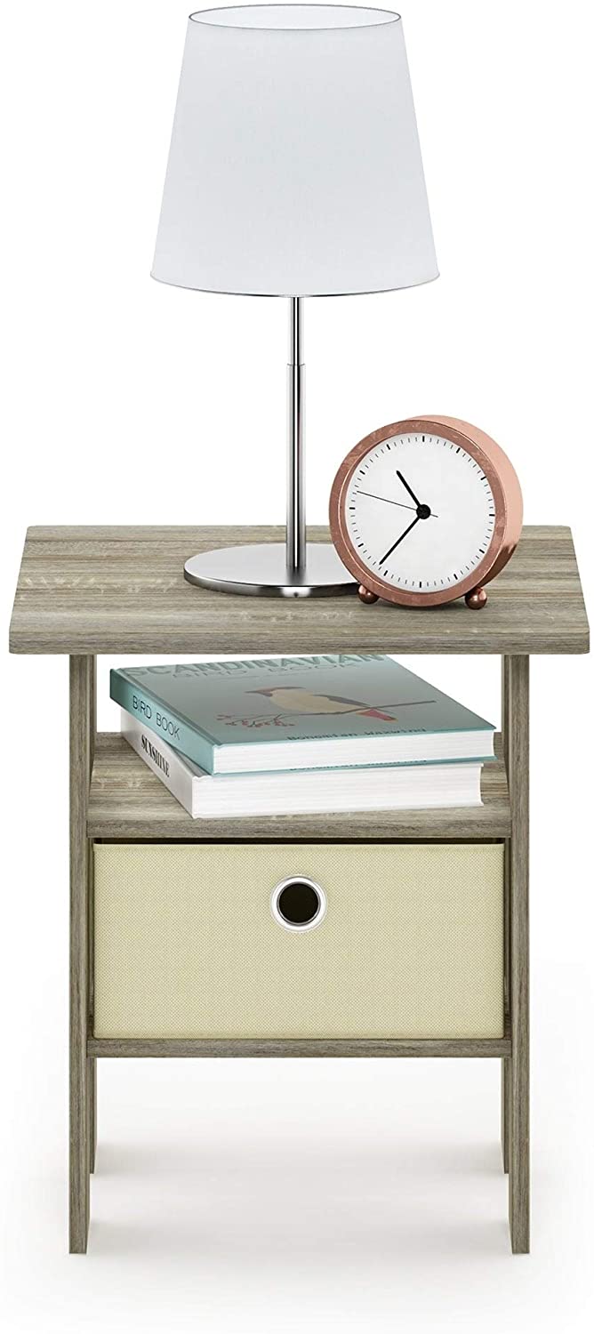 End Table Nightstand Bin Drawer Oak/Ivory Beige Modern Contemporary Square