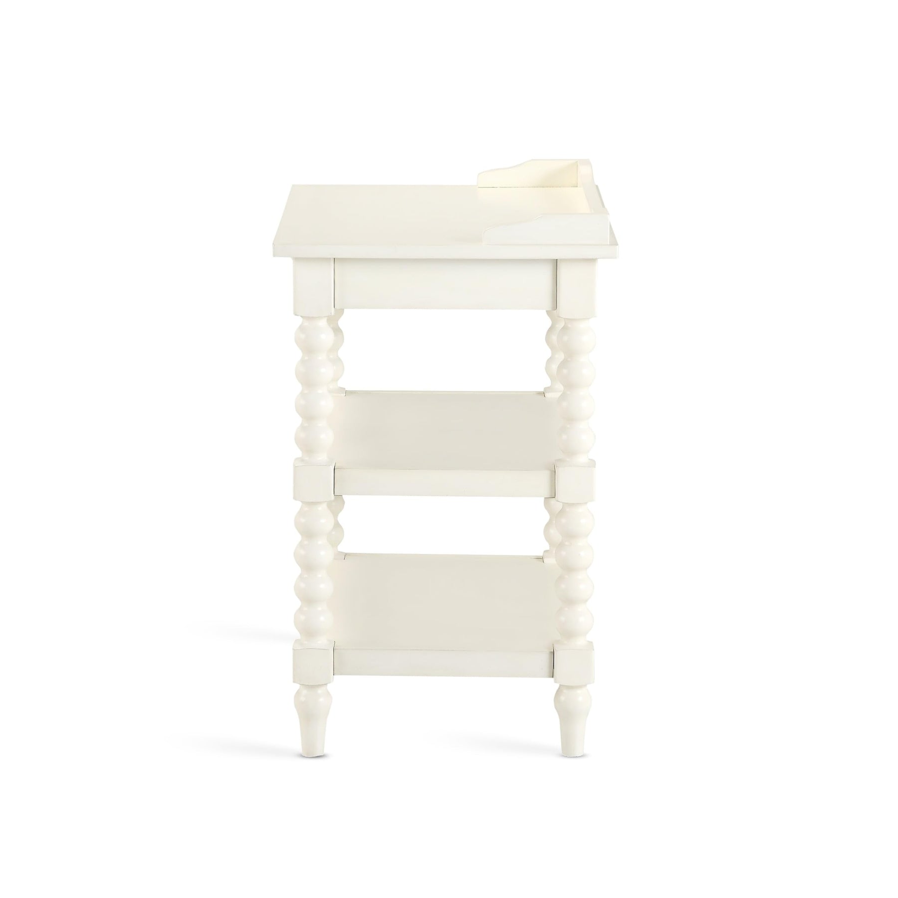 Introduce vintage style into your bedroom with this nightstand featuring distinctive spool spindles. Hardwood solids and oak veneers ensure strength and stability. This tiered nightstand includes two shelves, allowing easy access to your bedtime reading material and other small items and, for added space, this nightstand features a convenient pull-out tray.