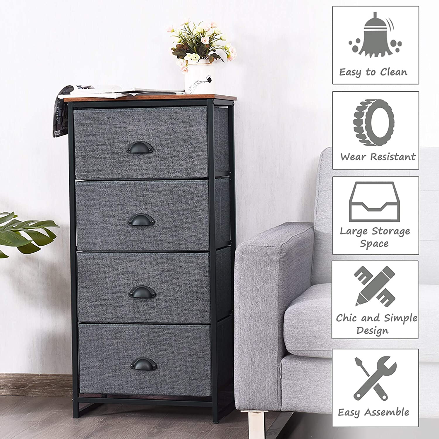 Dresser Storage Tower Nightstand 4 Drawers Black Modern Contemporary MDF