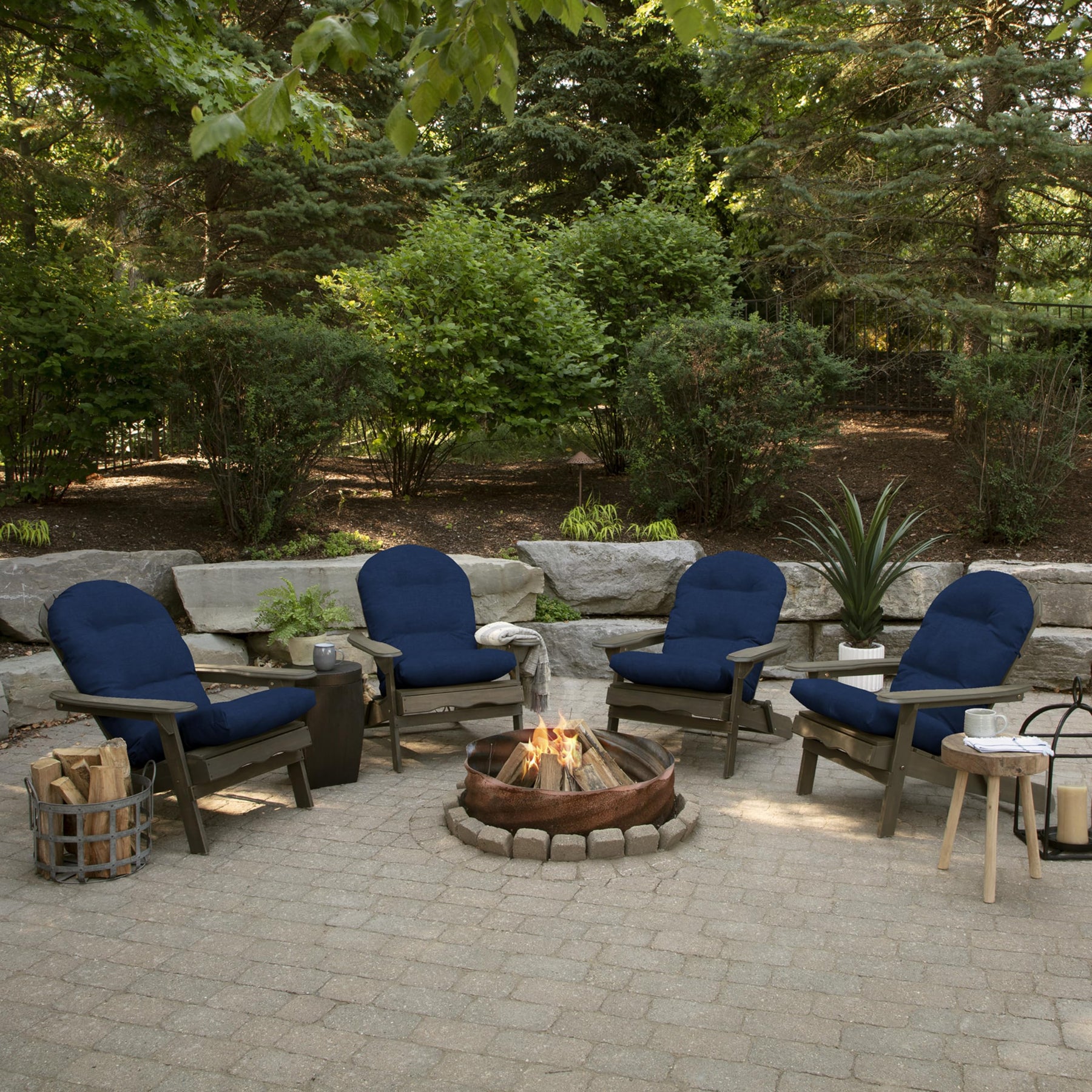 Set of 2 Adirondack Cushions | Dimensions of each: 21.5 in W x 48 in L x 5 in T (Back: 21.5 in W x 30 in H and Seat: 20 in W x 18 in L) | Eco-friendly PFAS-Free C0 Treatment | Polyfill made from recycled plastic bottles | Fits most standard Adirondack or Rocking chairs | 100% polyester fabric | 2 sets of ties to keep your cushion firmly in place | 1-Year limited fabric warranty | Cleans easily with soap and water