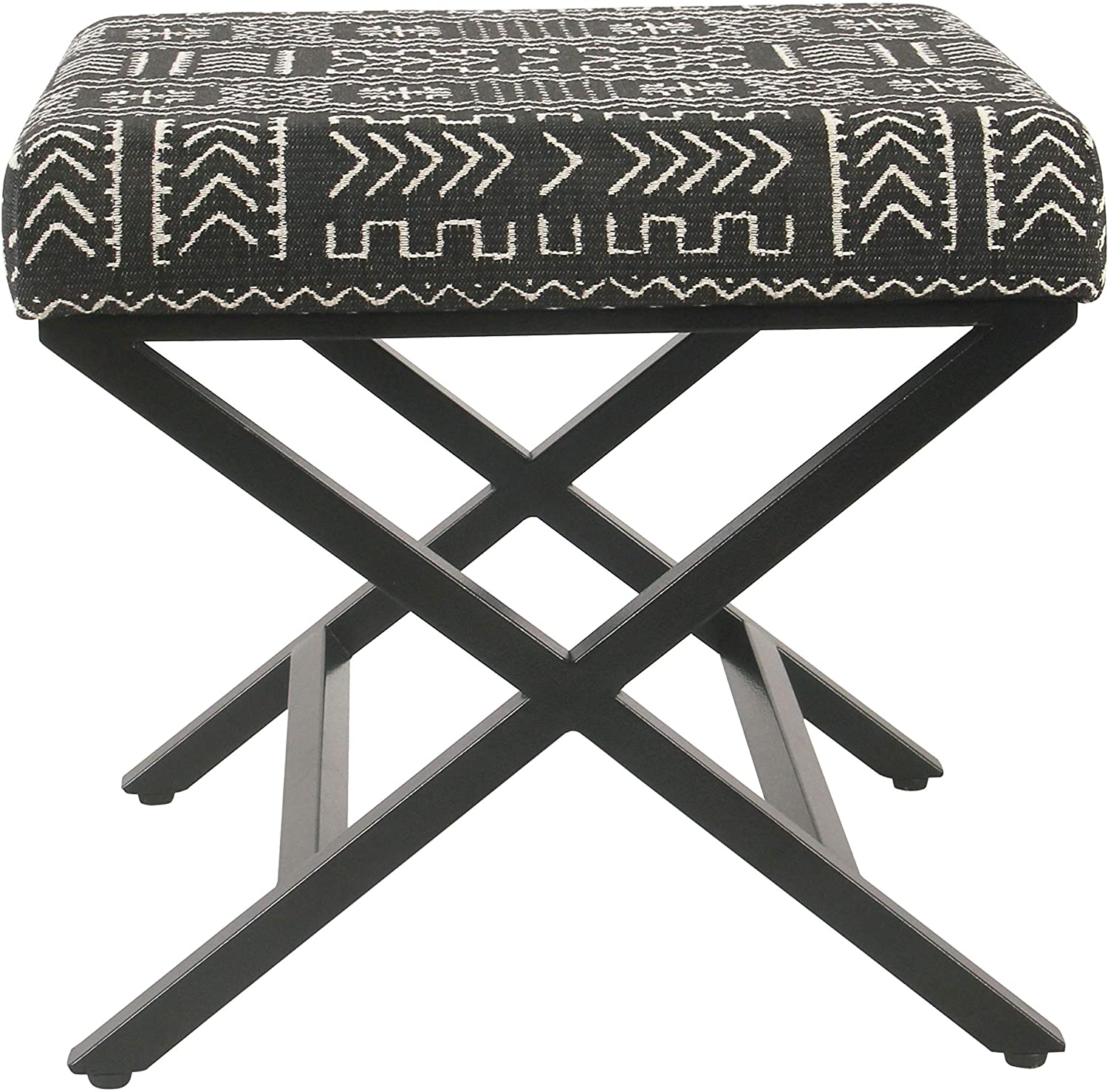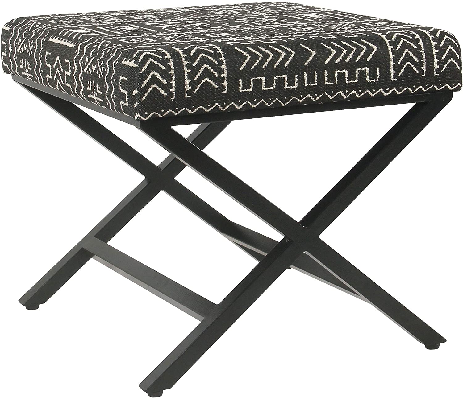 Onyx Upholstered Metal Ottoman Black Geometric Industrial Pattern Square Fabric