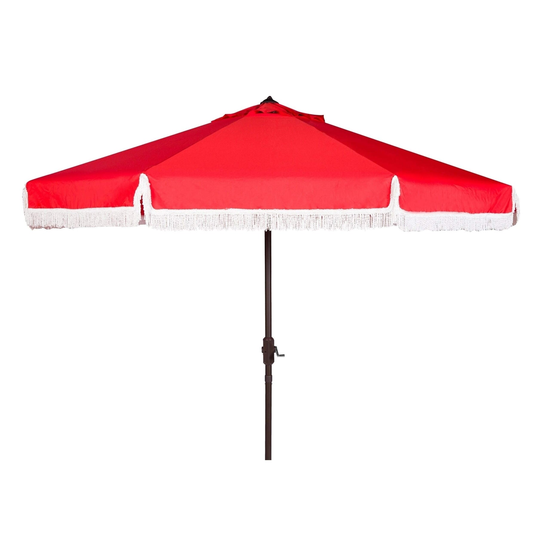 Fringe 9 Ft Crank Red/White Outdoor Umbrella Red Classic Aluminum
