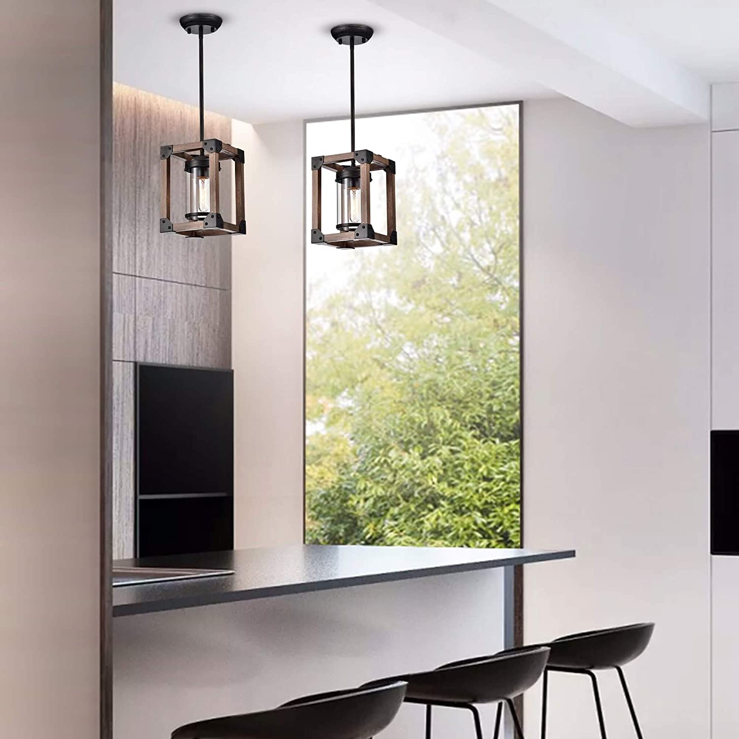 Antique Black Wooden Cage Glass Cylinder Pendant Chandelier N/ Industrial