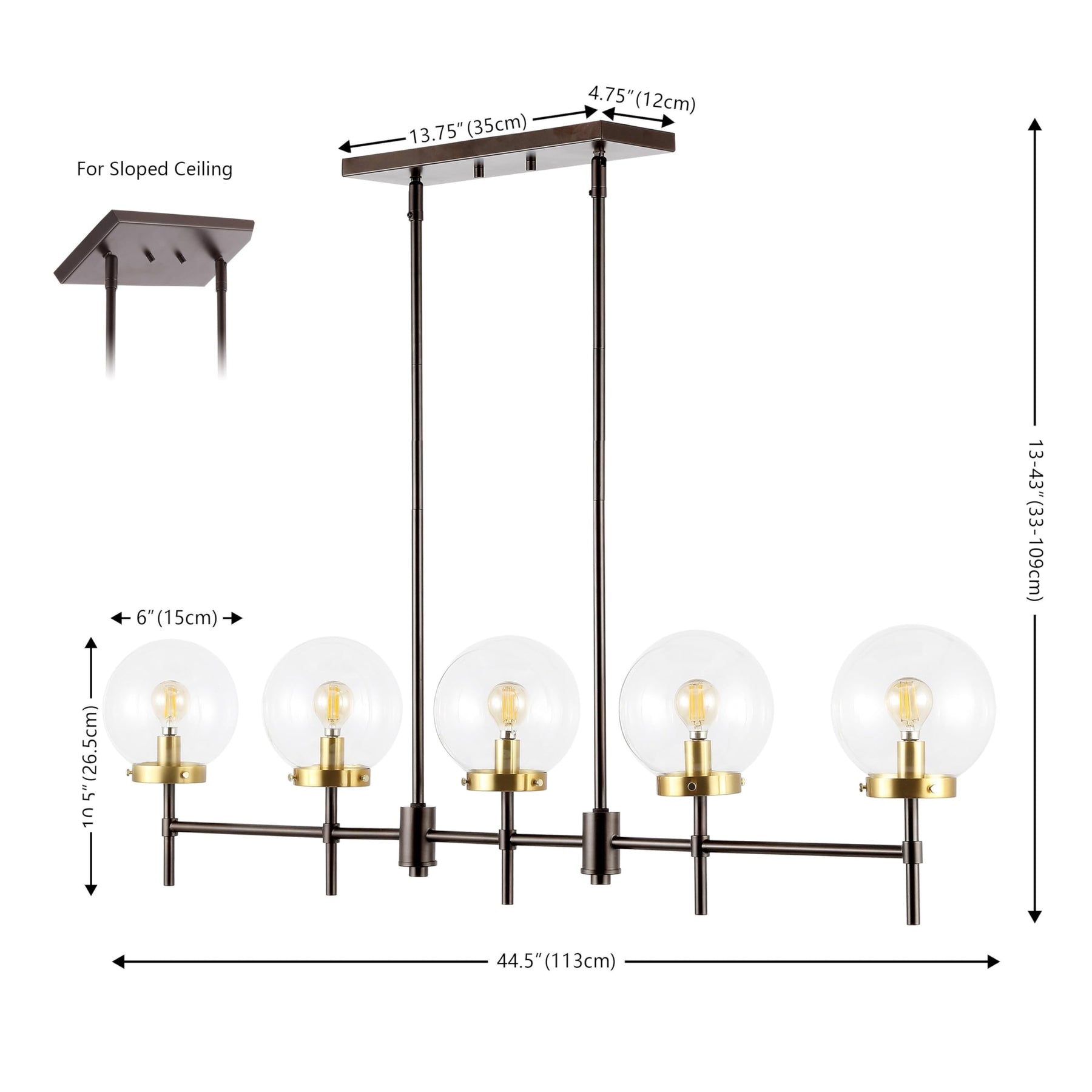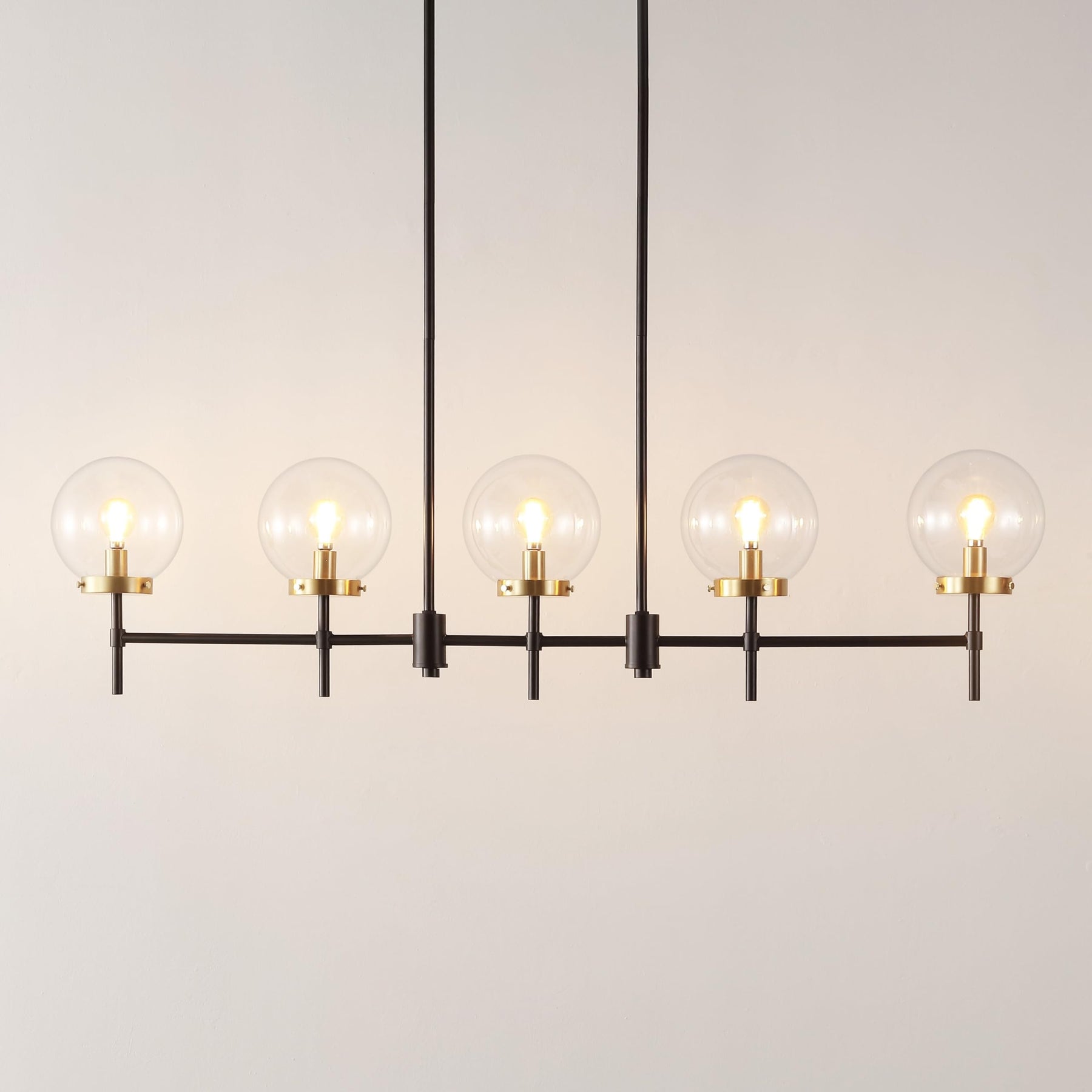 Home Lighting Collection 45" Modern Contemporary (5-bulb) W X 6" D 43" H Brown Yellow Iron Bulbs Included | Design/Look : Modern & Contemporary. Material : Iron. Shade material : Glass. Switch type : Hardwired. Assembly : Assembly Required. Color : Brown, Yellow. Exact bulb wattage : 4. Exact number of lights : 5. Finish enhancements : Oil Rubbed. Fixture design : Linear. Light bulb type : LED Compatible. Light direction : Multi-directional. Metal finish : Bronze. Power source : Hardwired | Product Size: 6.0 In. W X 43.0 In. H X 6.0 In. D.