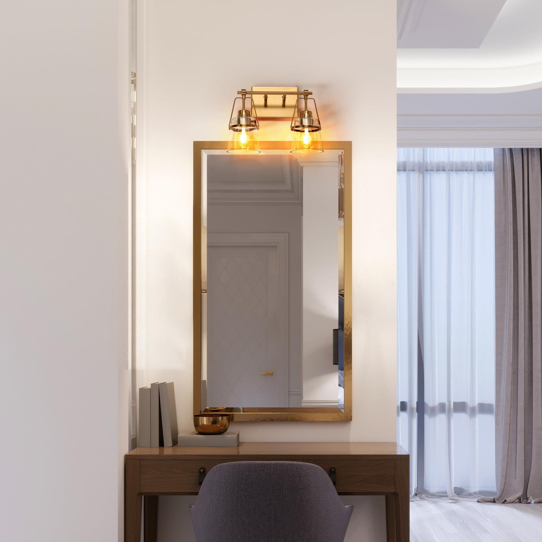 Mid-Century Modern 2-Light Clear Glass L 13.4" X D 5.7"