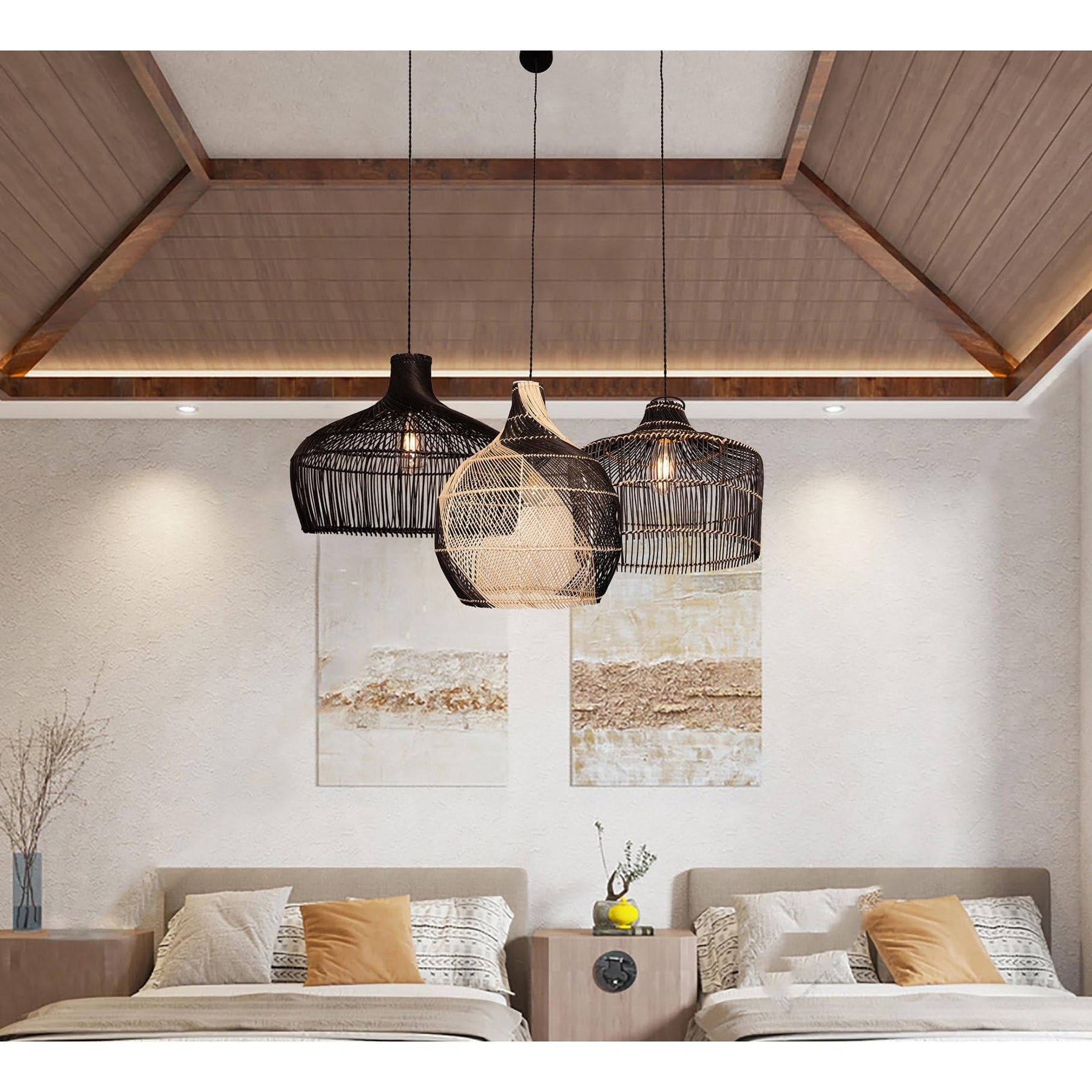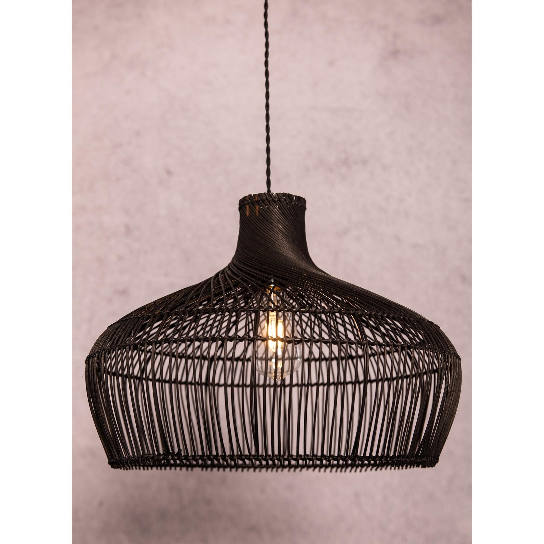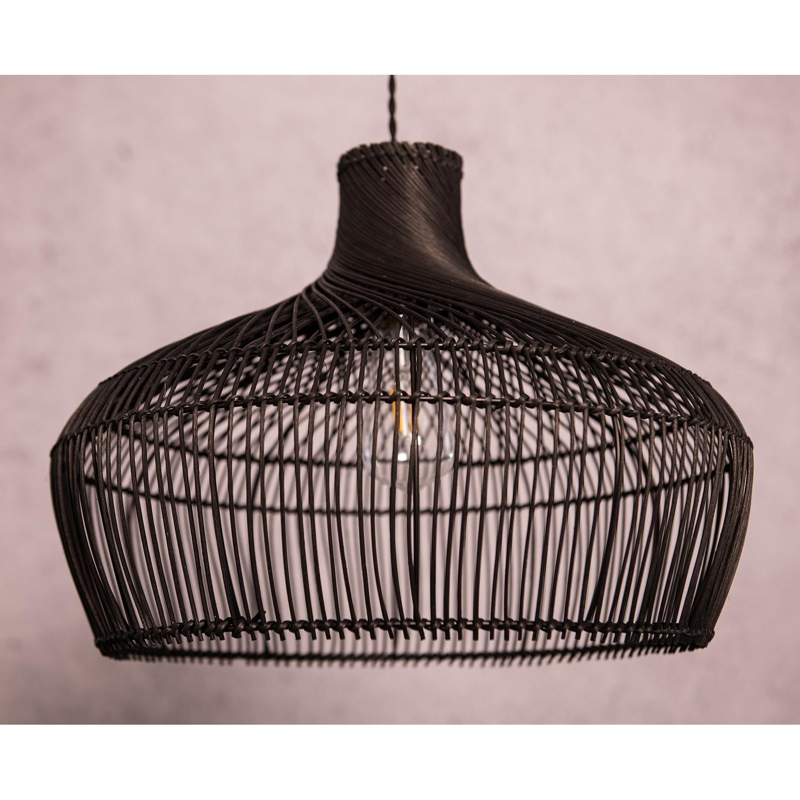 Modern Hand-woven Rattan Black Coastal Hanging Light 18" Wide Bohemian