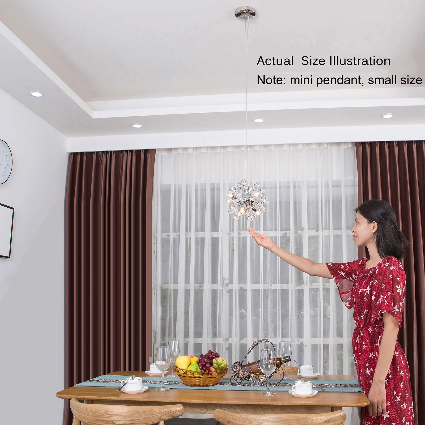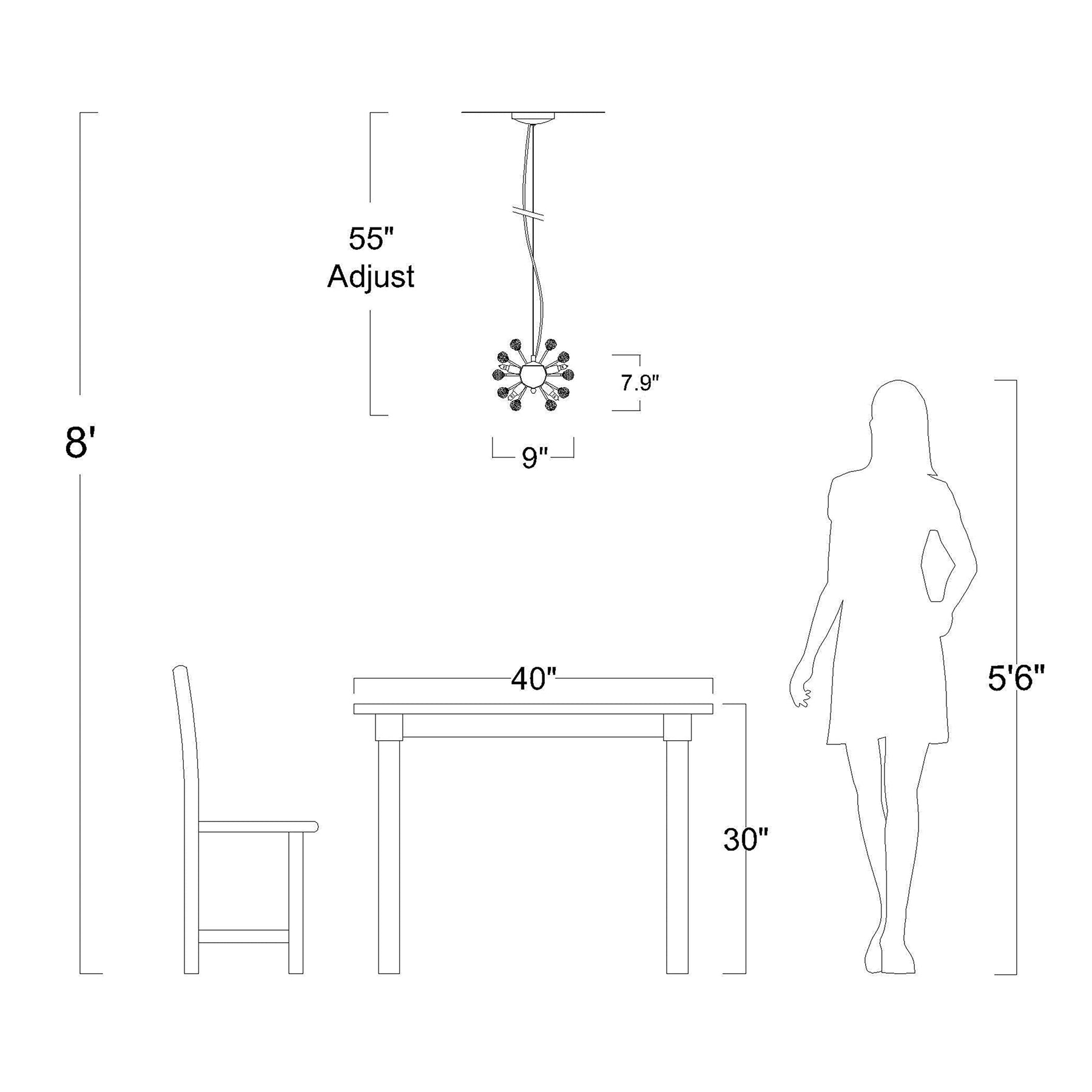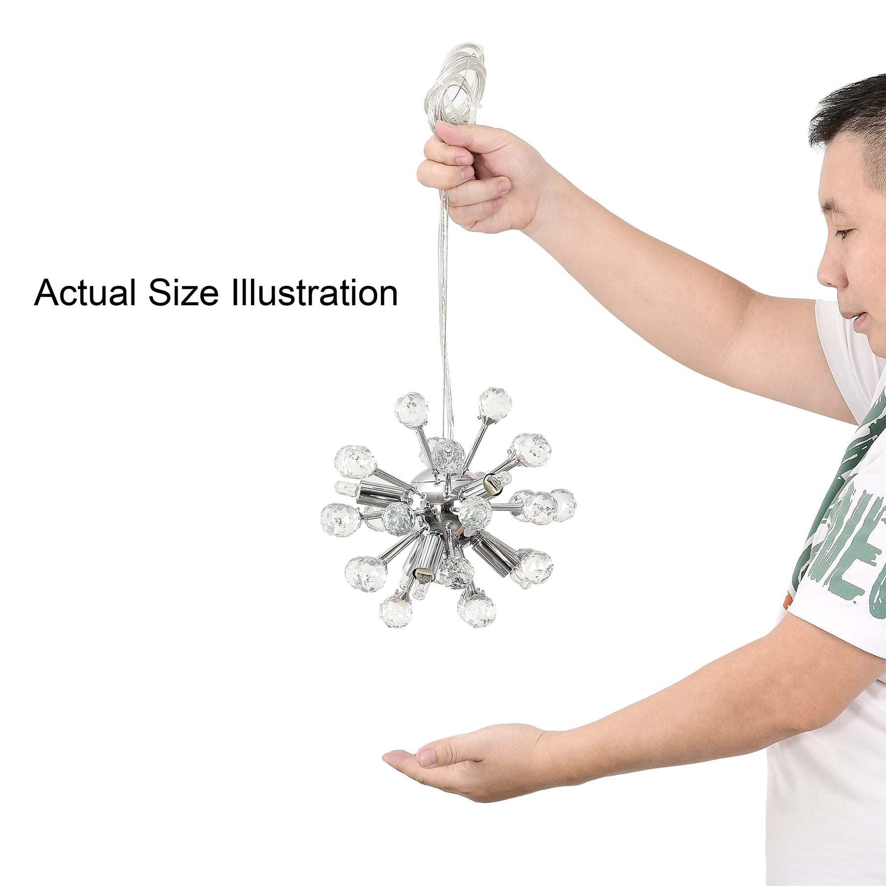 Illuminate your space with the Clara Mini Pendant 6-light Sputnik Clear Crystal Balls Pendant Chandelier. The chrome-finished iron base and clear crystal balls exude sophistication and modernity. With a maximum hanging height of 55 inches, this indoor chandelier can be customized to fit your space. Note that it is not suitable for sloped or vaulted ceilings. Assembly is required, and professional installation is recommended.Features: