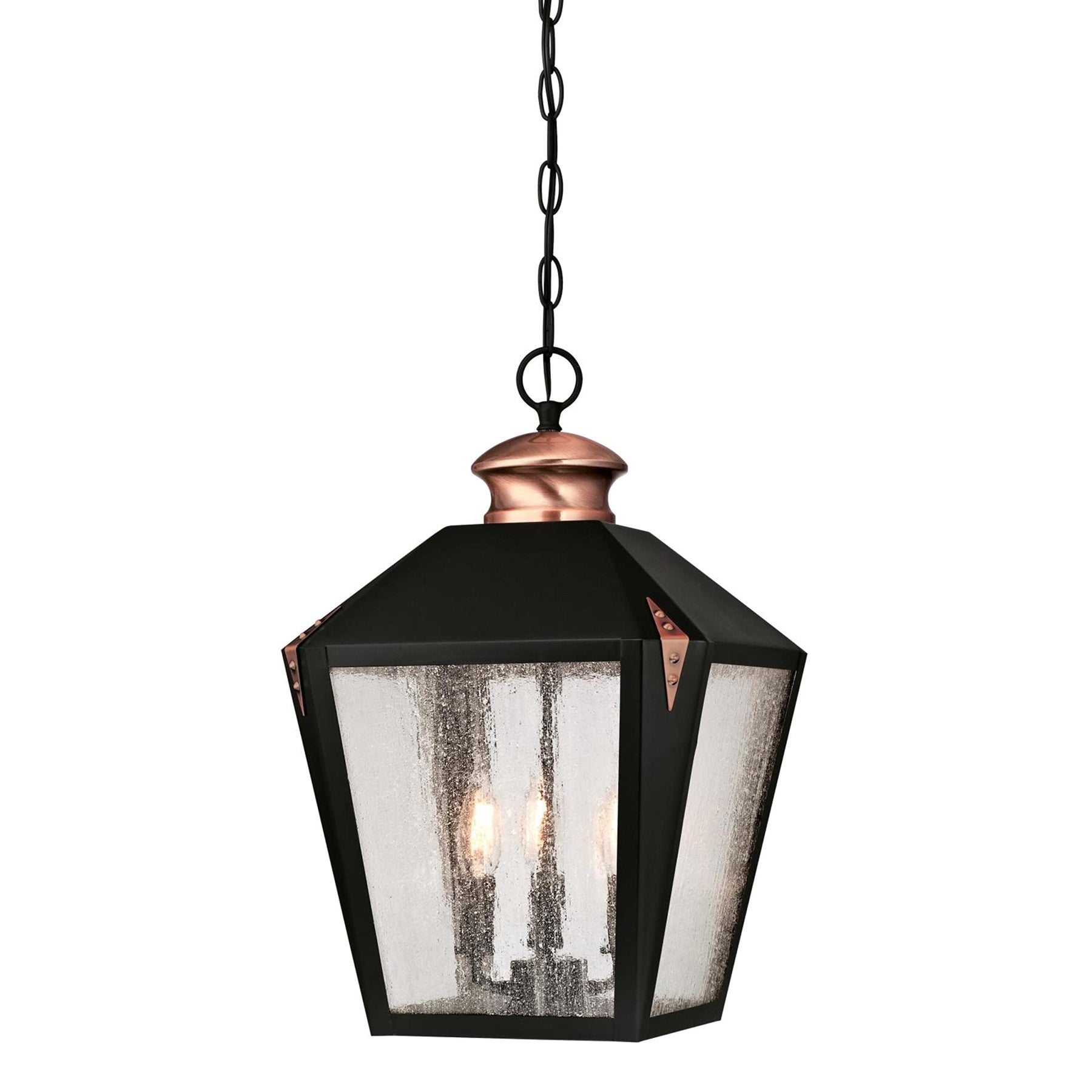 Three-light Outdoor Matte Black Finish with Washed Copper Accents and