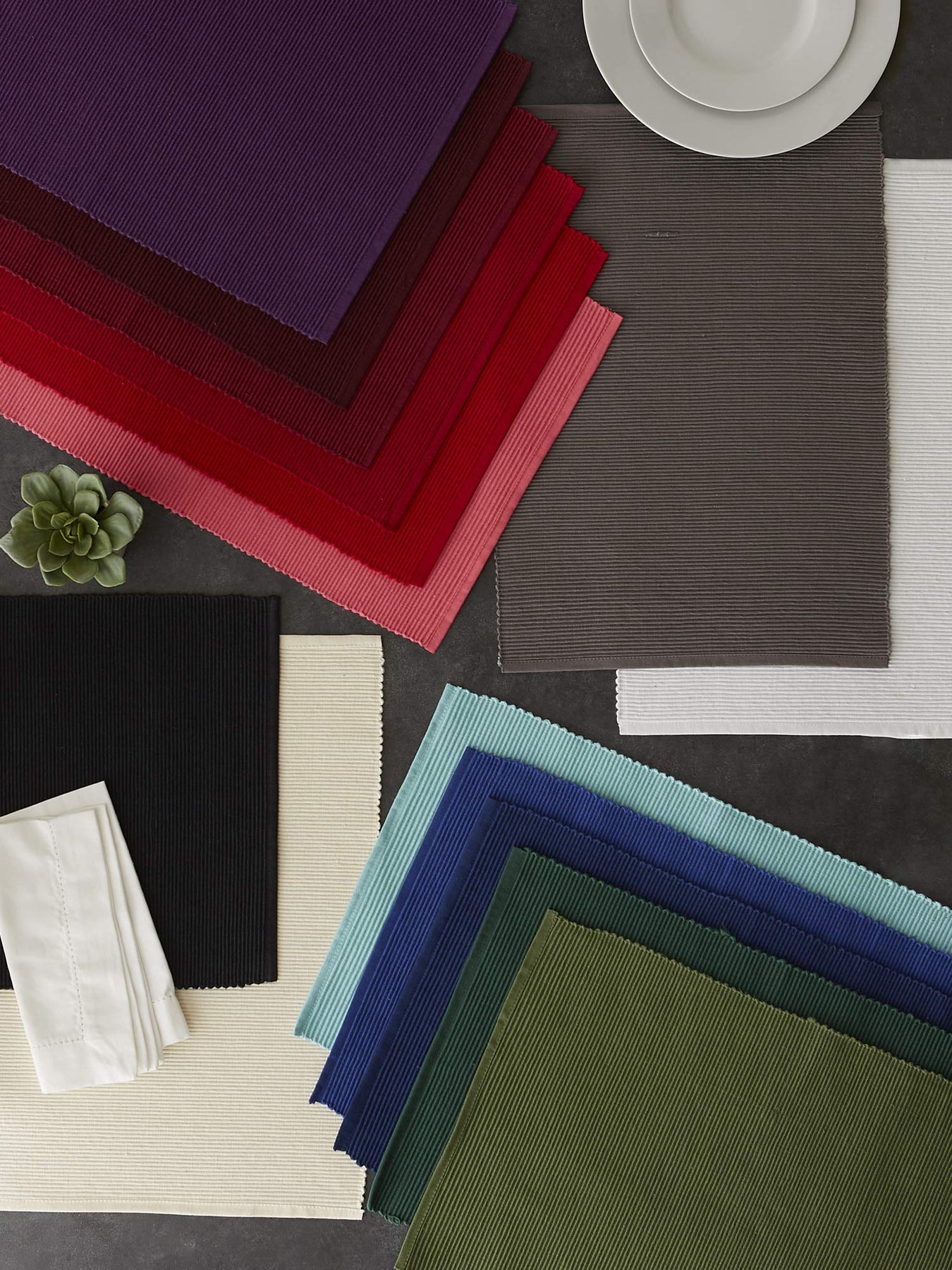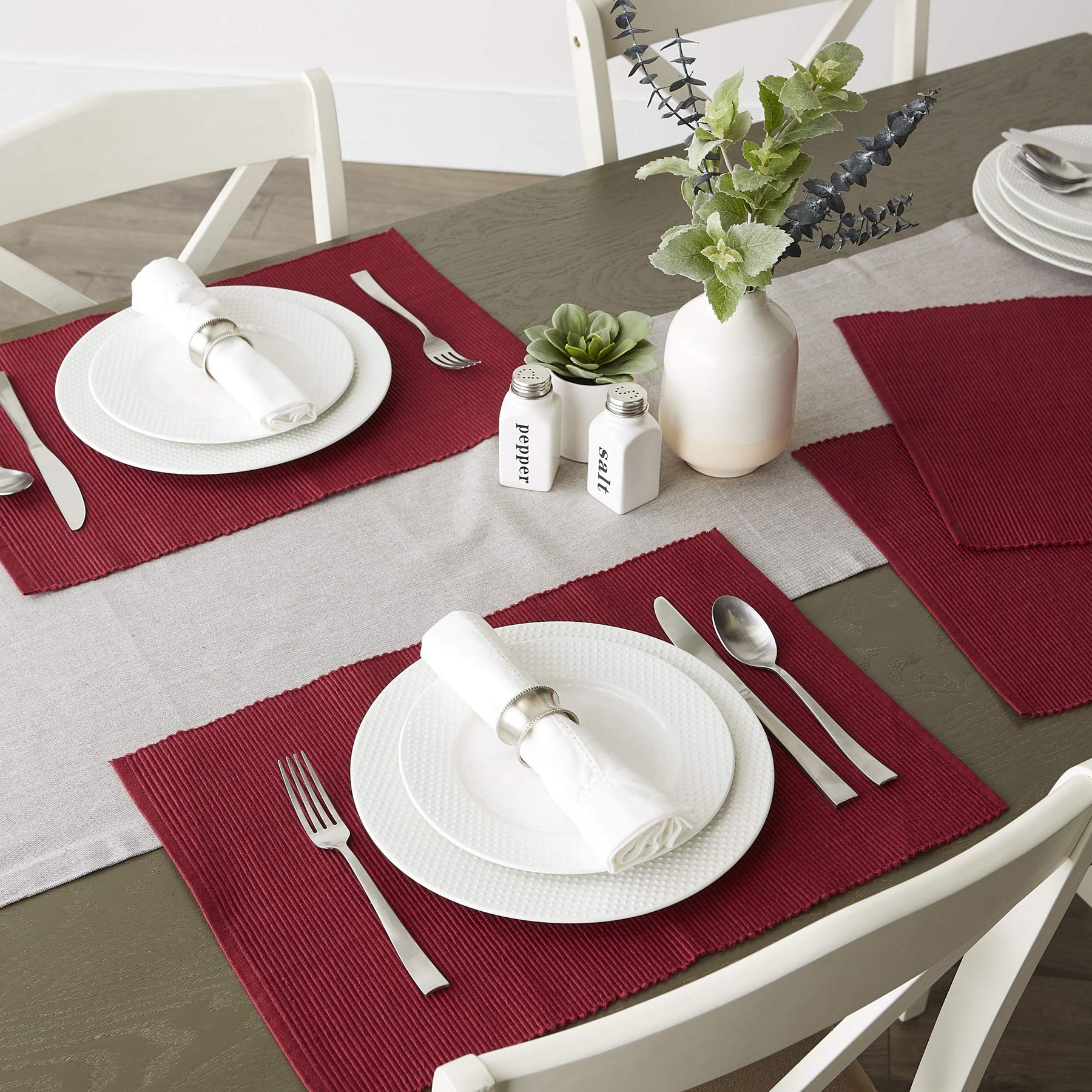 CC Home Furnishings Set of 6 Wine Red Ribbed Placemats