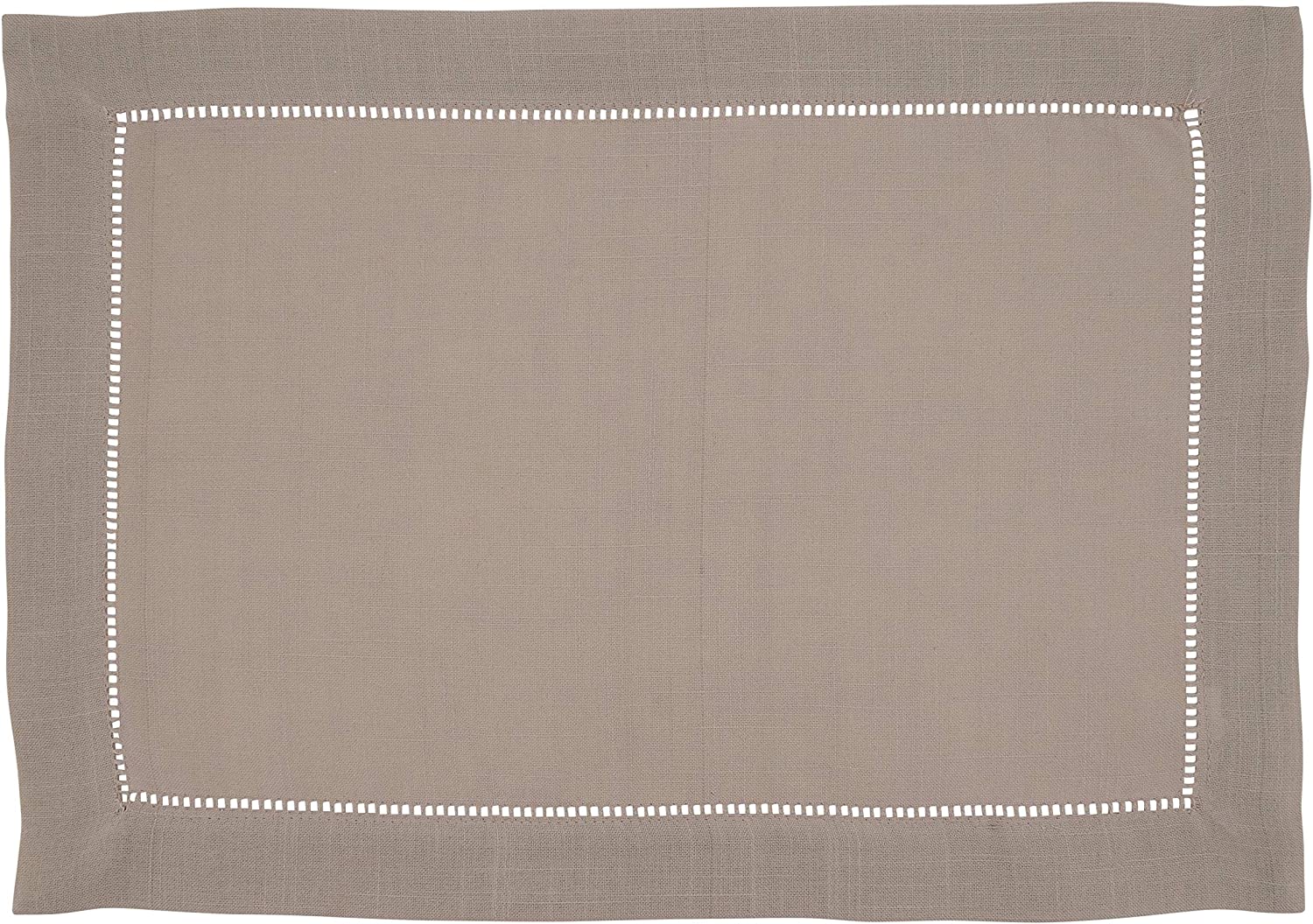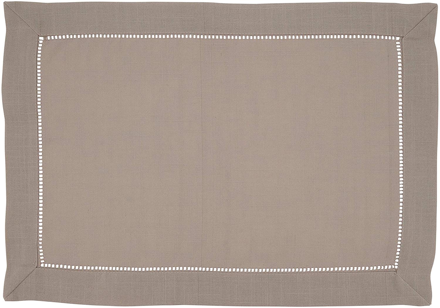Classic Hemstitch Border Placemat (Set 12) Brown Oblong Polyester