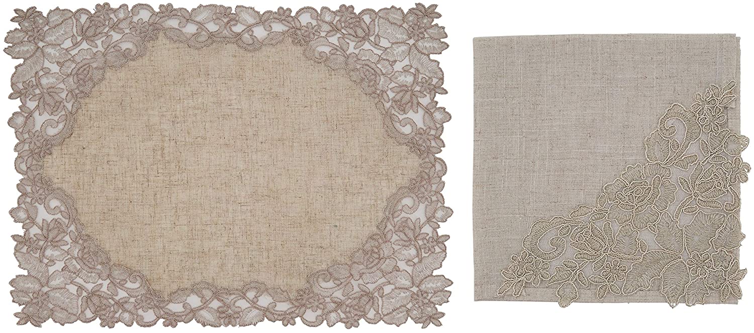 Table Napkin Placemat Set Lace Embroidered Design (1 Placemat Napkin)