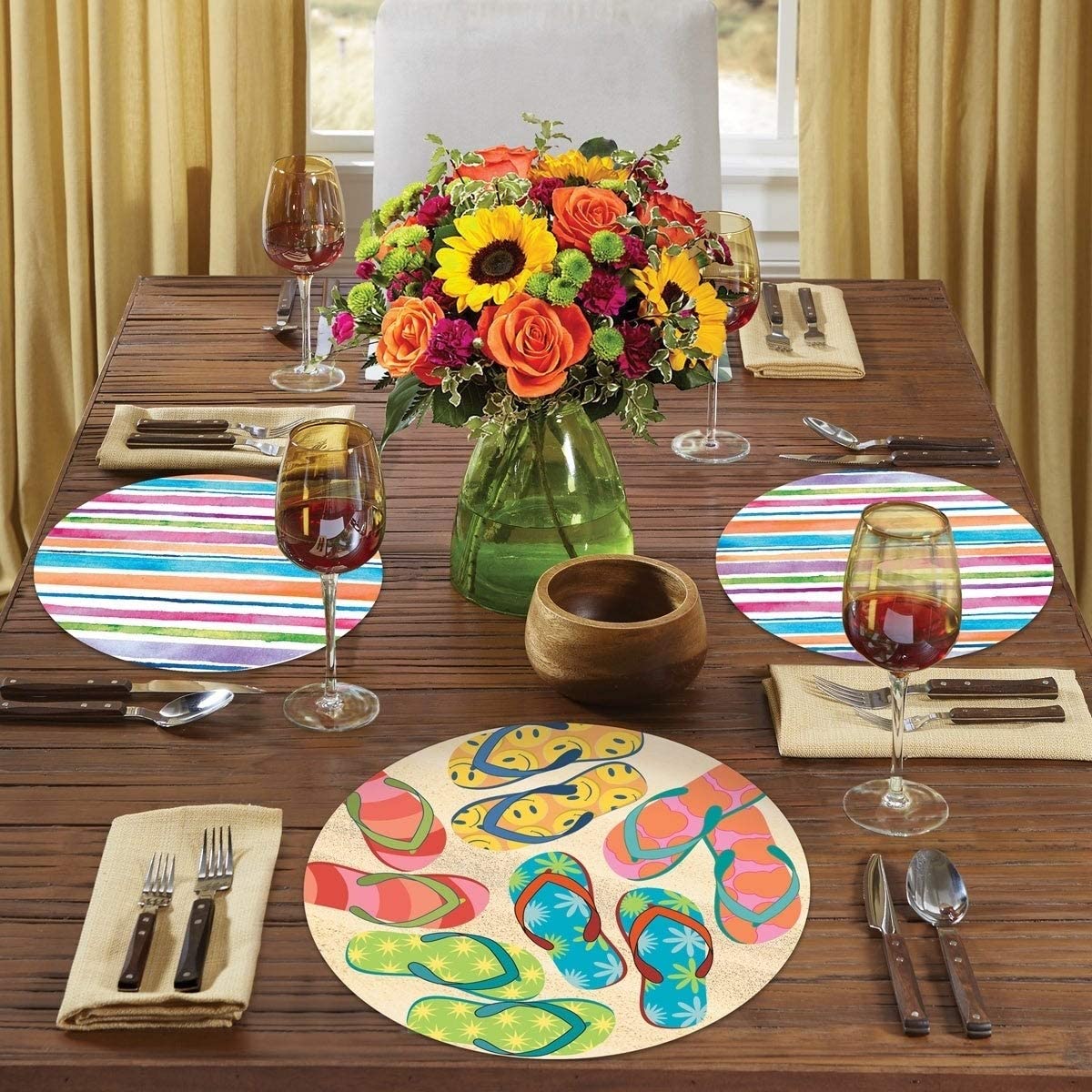 Round Wipe Clean Placemats Set 4 Summer Flip Flops Color
