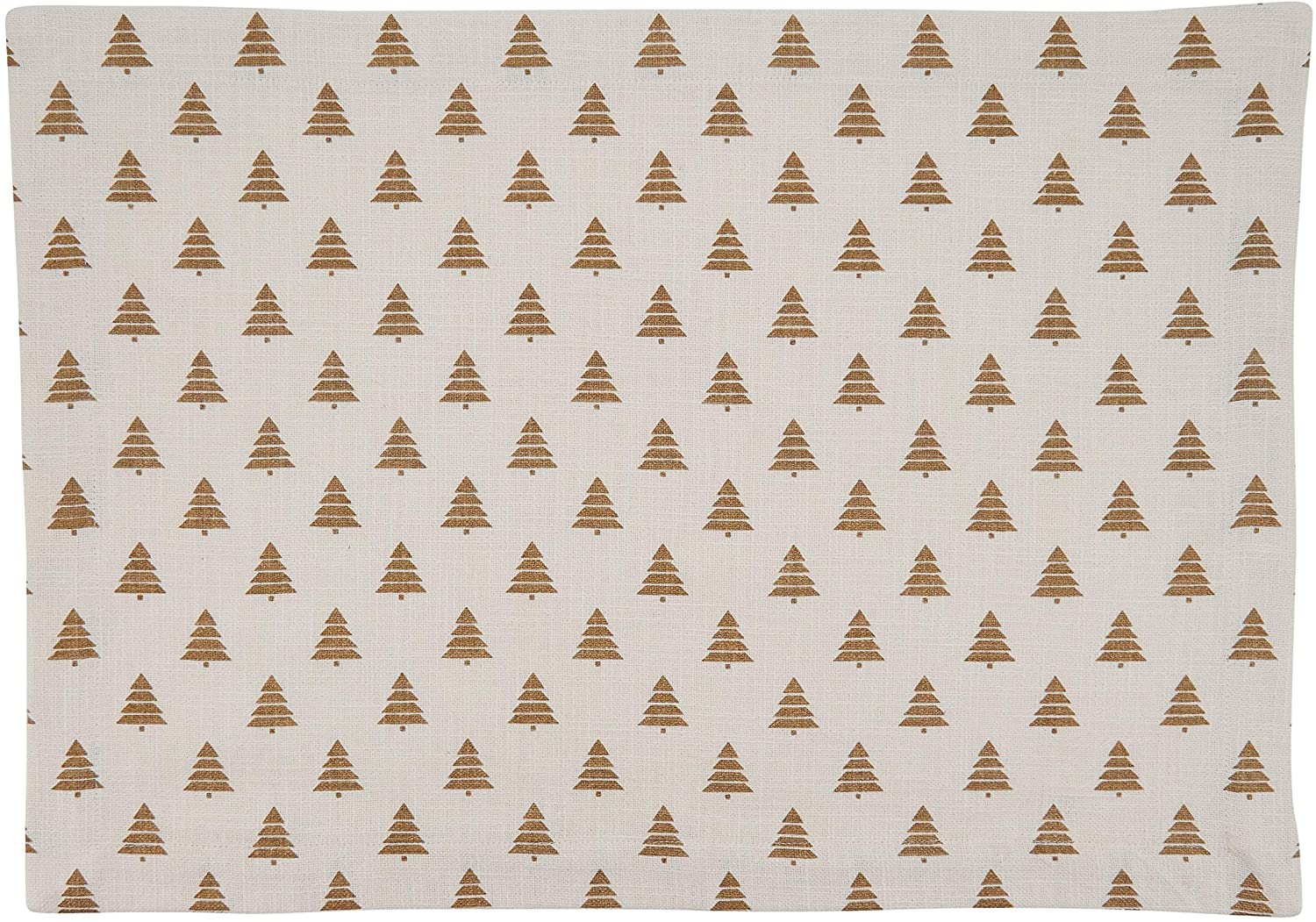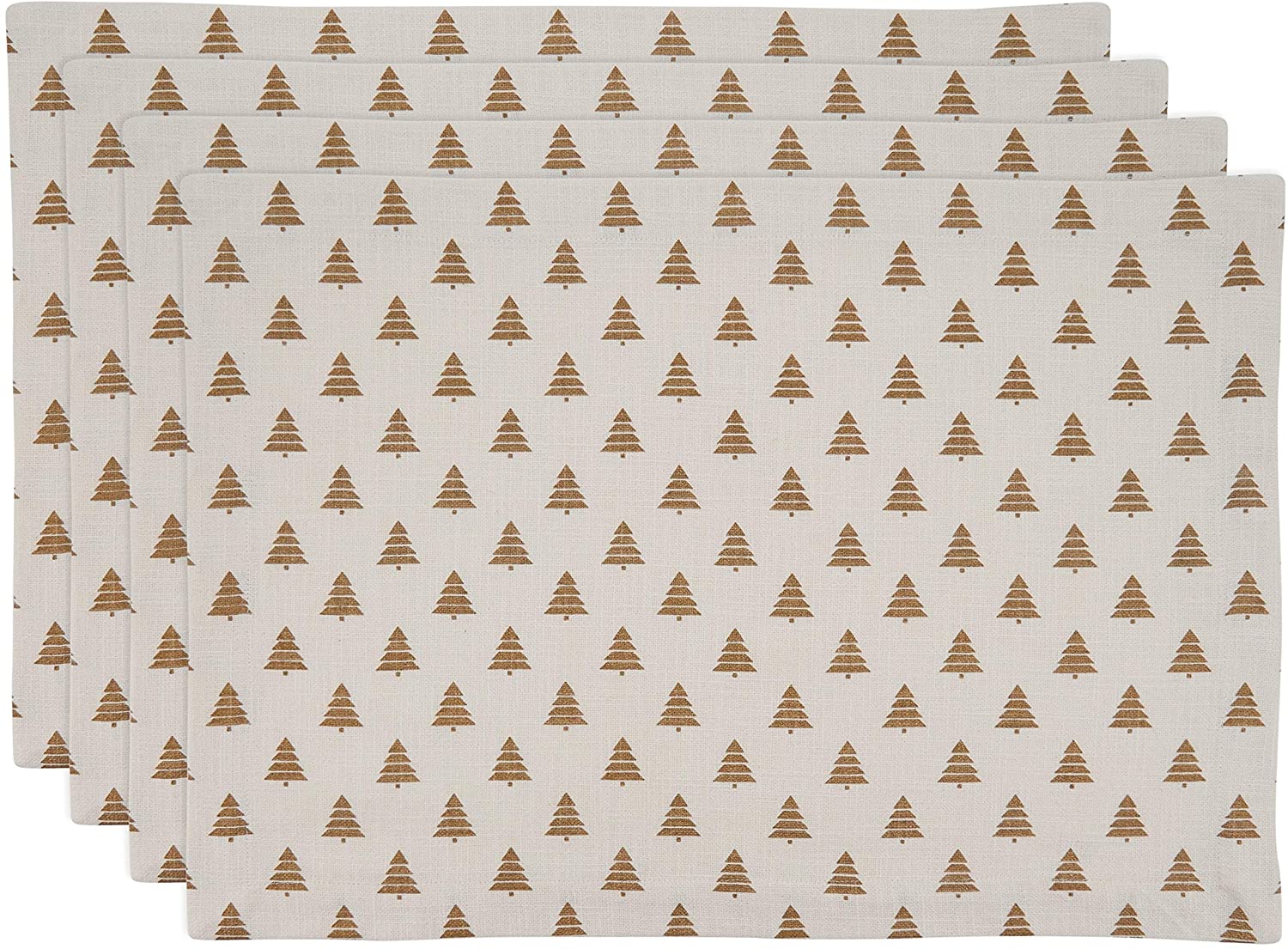 Cotton Placemats Christmas Trees Design (Set 4) Gold Oblong