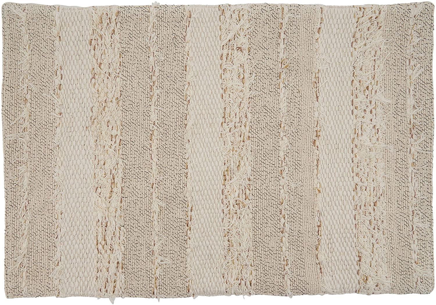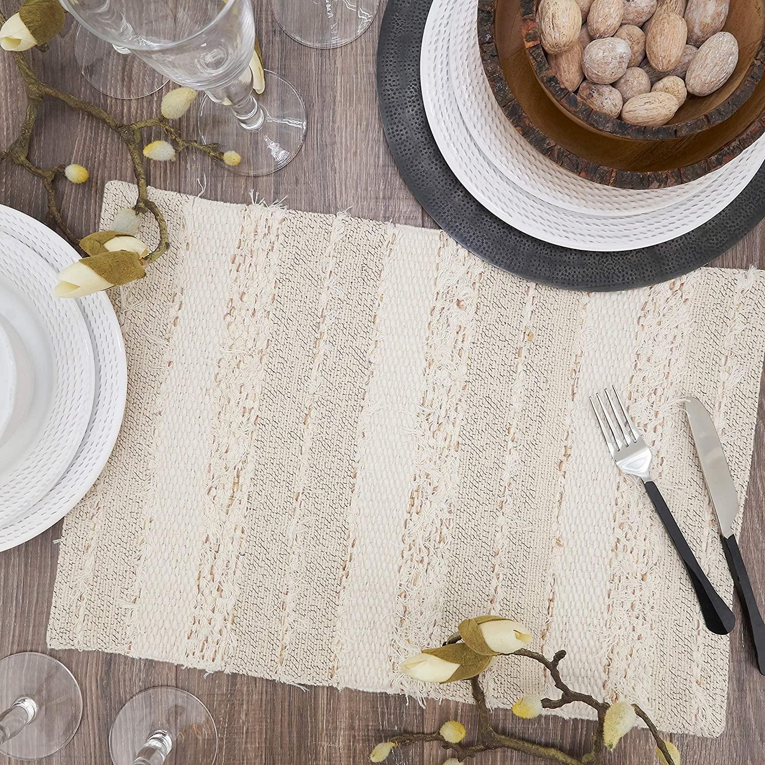 Placemats Fringe Stripe Design (Set 4) Off/White Oblong Cotton