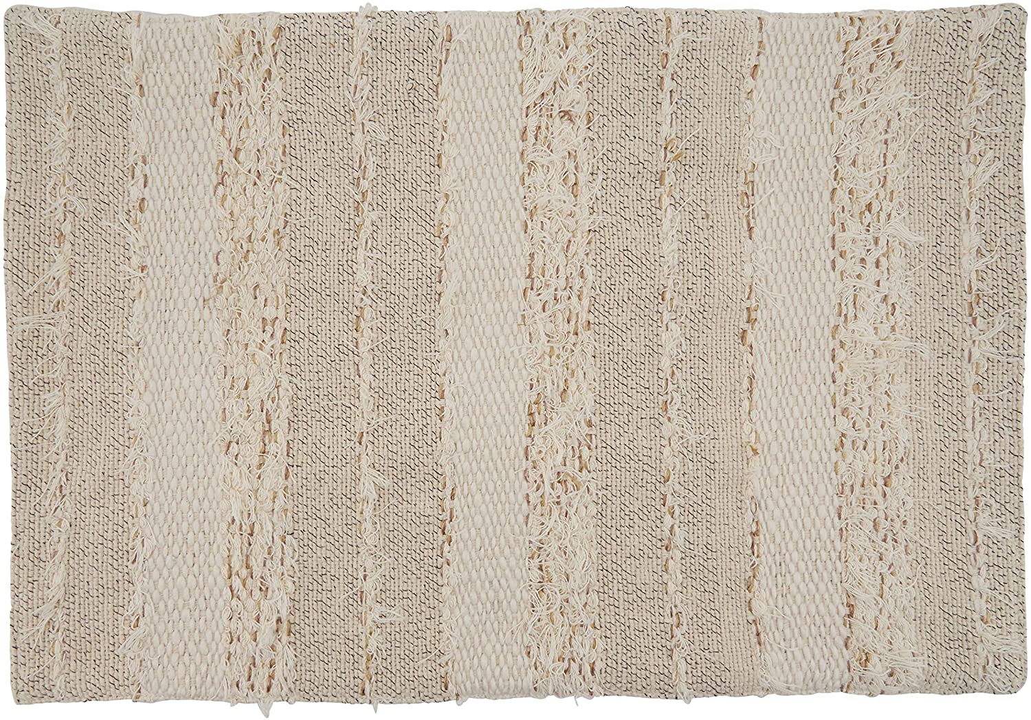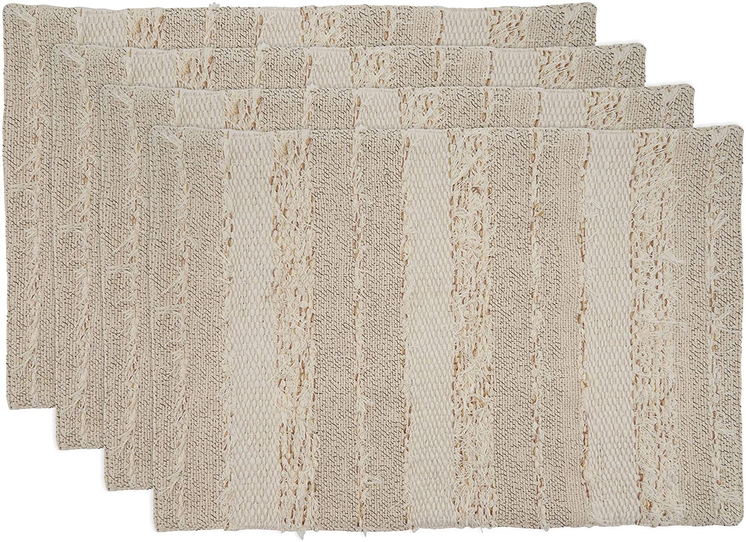 Placemats Fringe Stripe Design (Set 4) Off White Oblong Cotton
