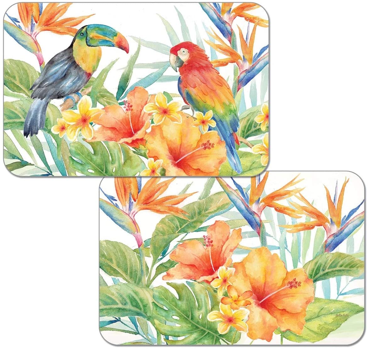 Wipe Clean Placemats Set 4 Tropical Birds Color Rectangle Plastic