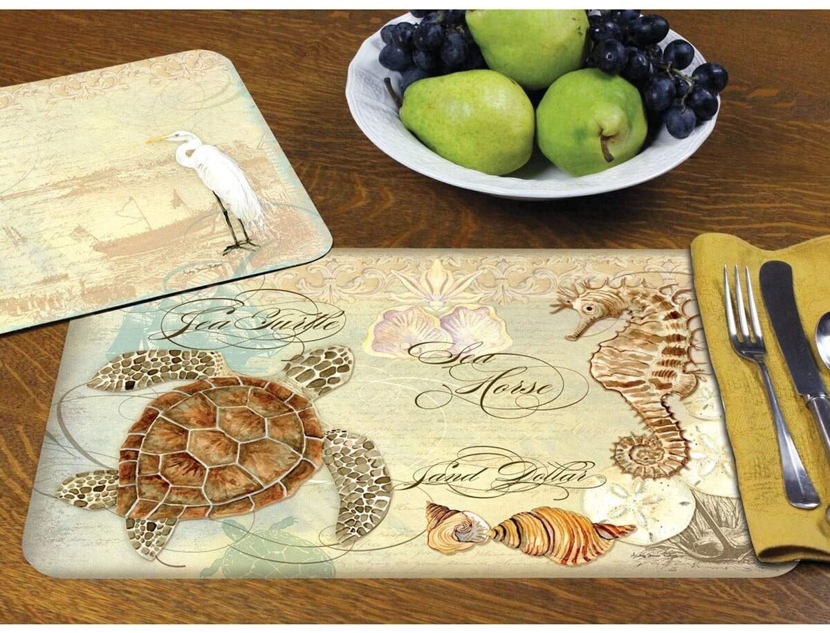 Wipe Clean Plastic Placemats Set 4 Coastal Waterways Color Rectangle