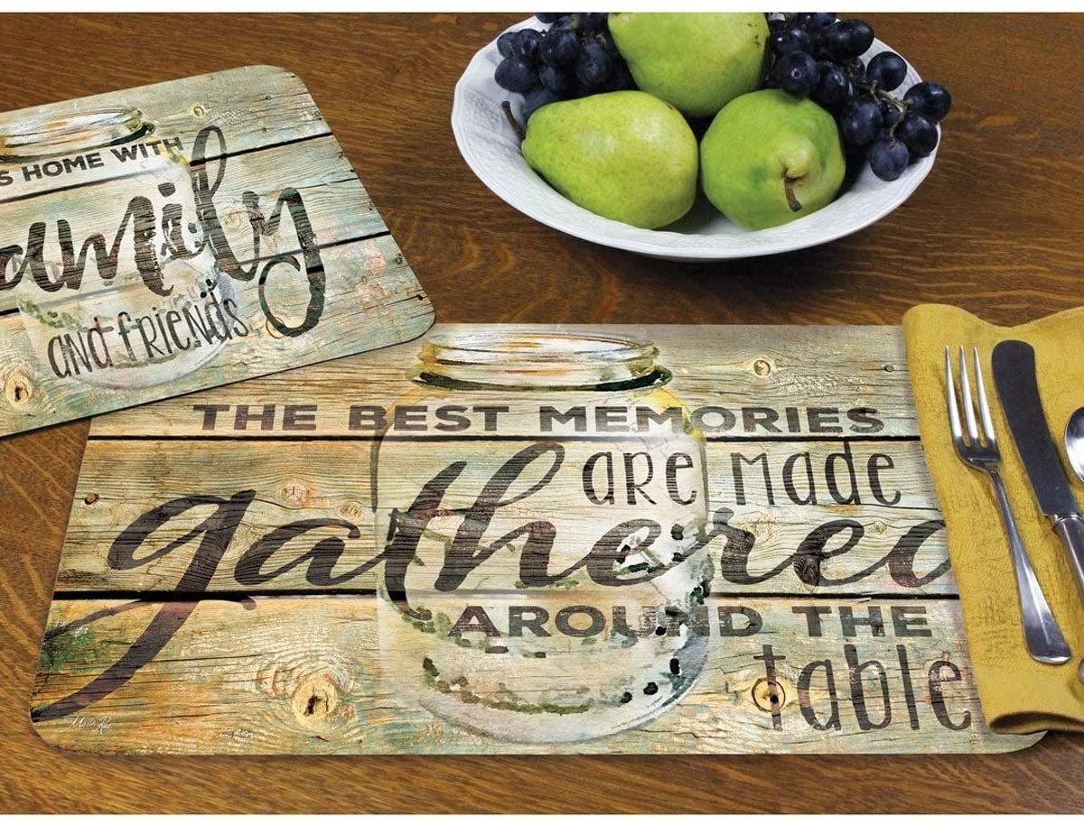 Wipe Clean Plastic Placemats Set 4 Family Time Color Rectangle