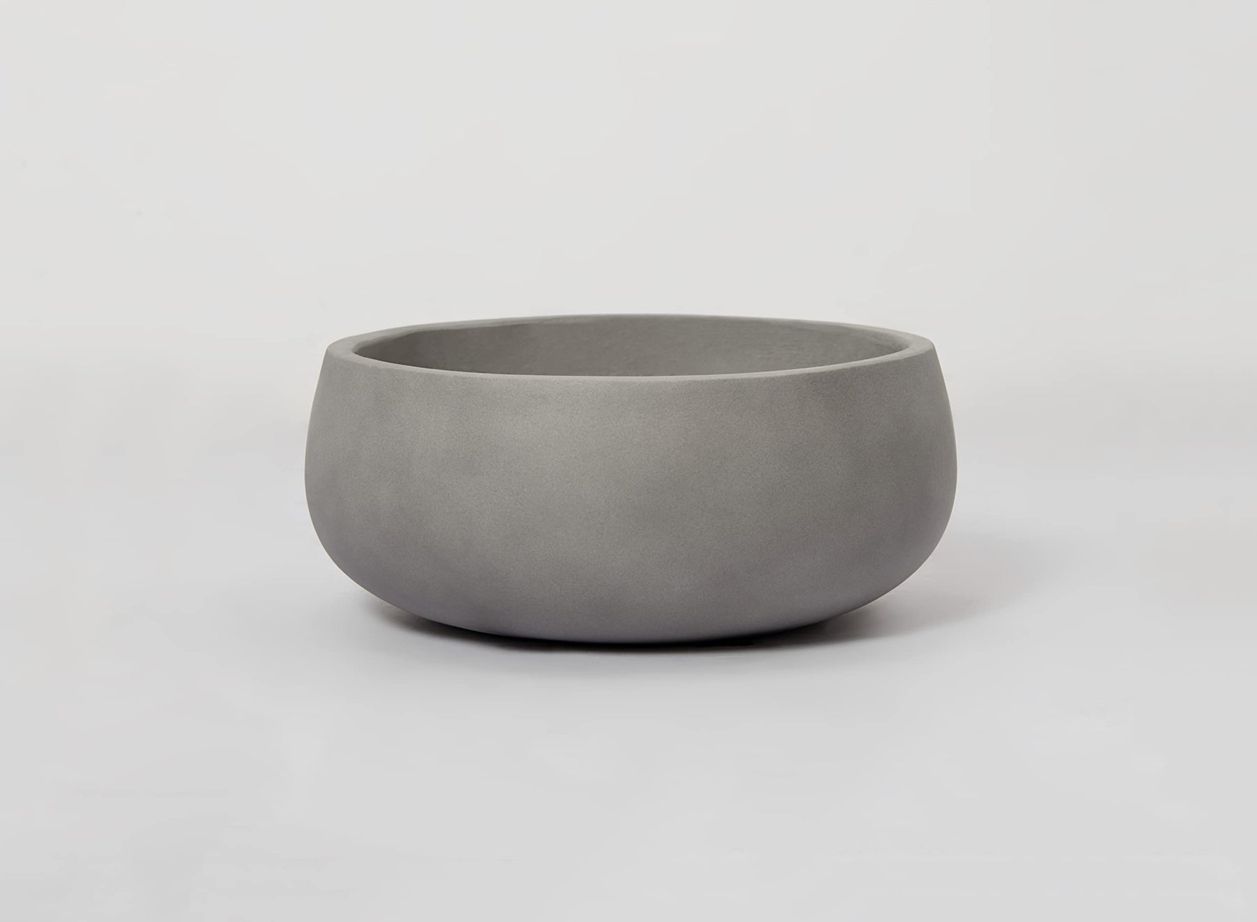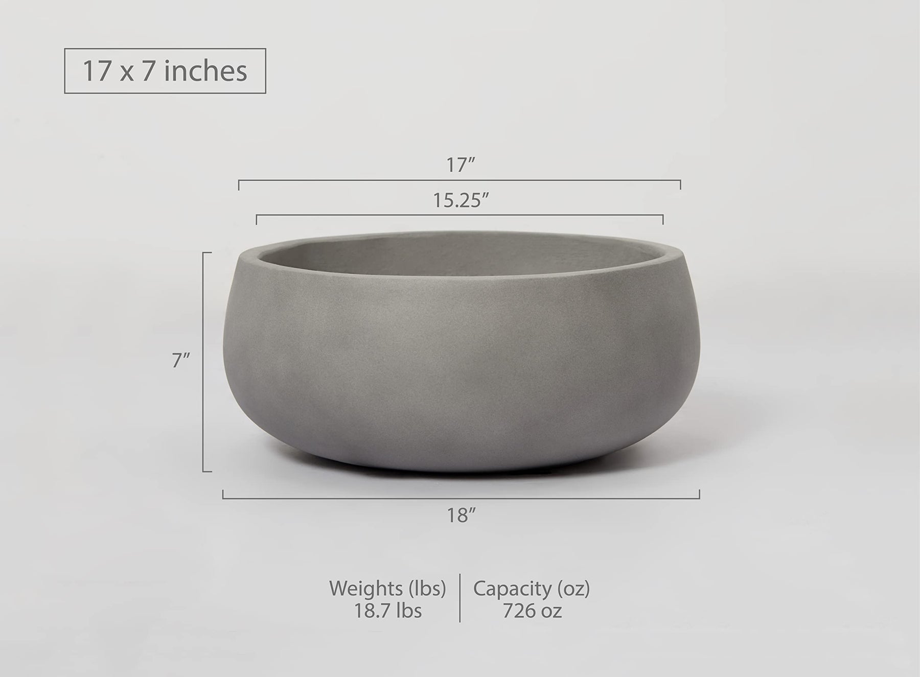 CraftandForm Indoor/Outdoor Large Nordic Minimalist Light Cement/Concrete Lightweight Round Centerpiece Bowl Planter Pot - 17 13 in - Exotic Foliage (17" D x 7" H Cement Gray)