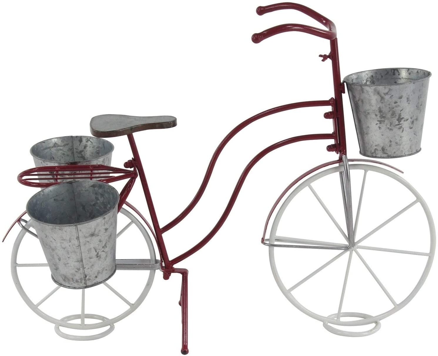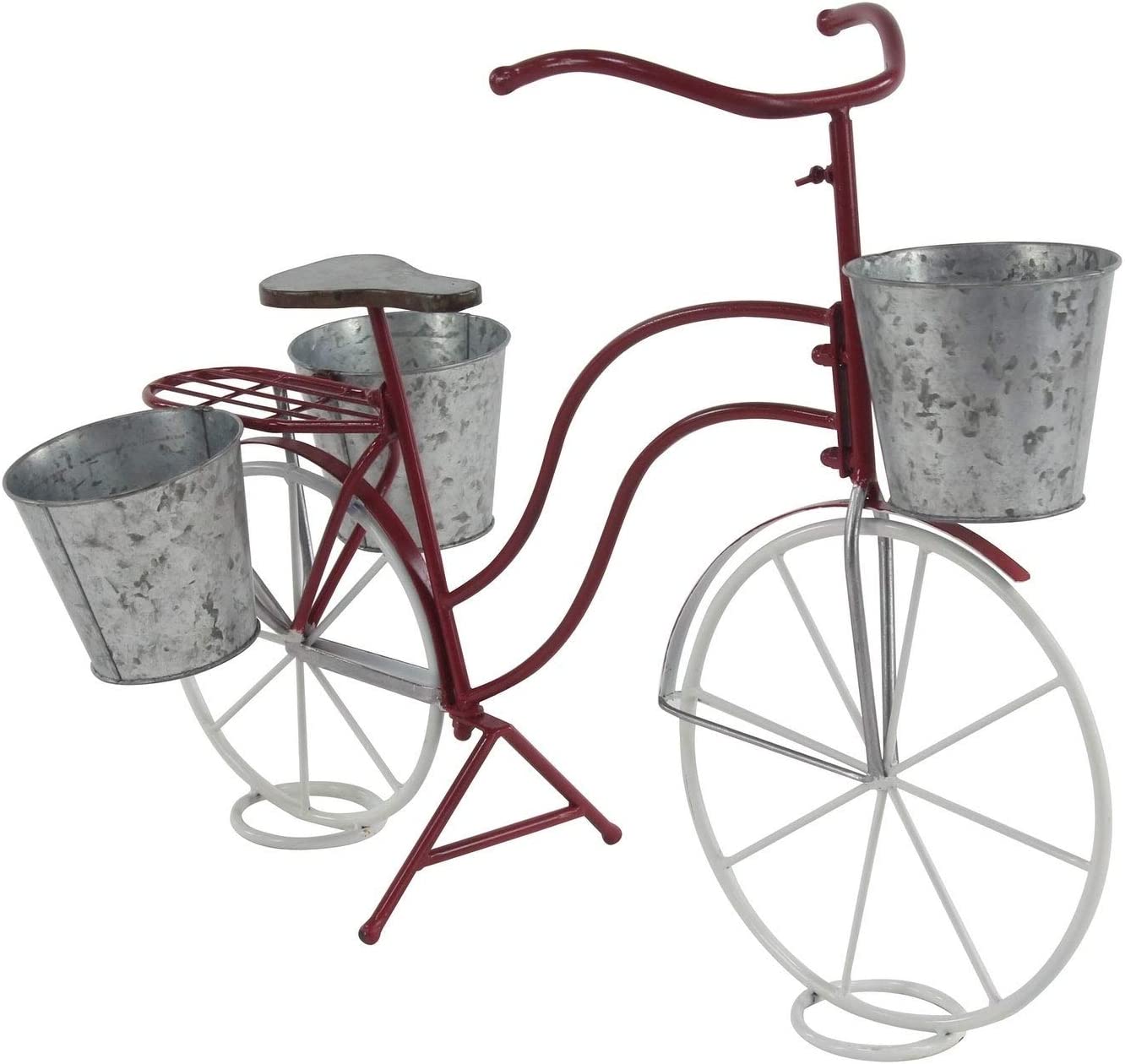 Eclectic 22 Inch Red White Bicycle Plant Stand Grey Bohemian