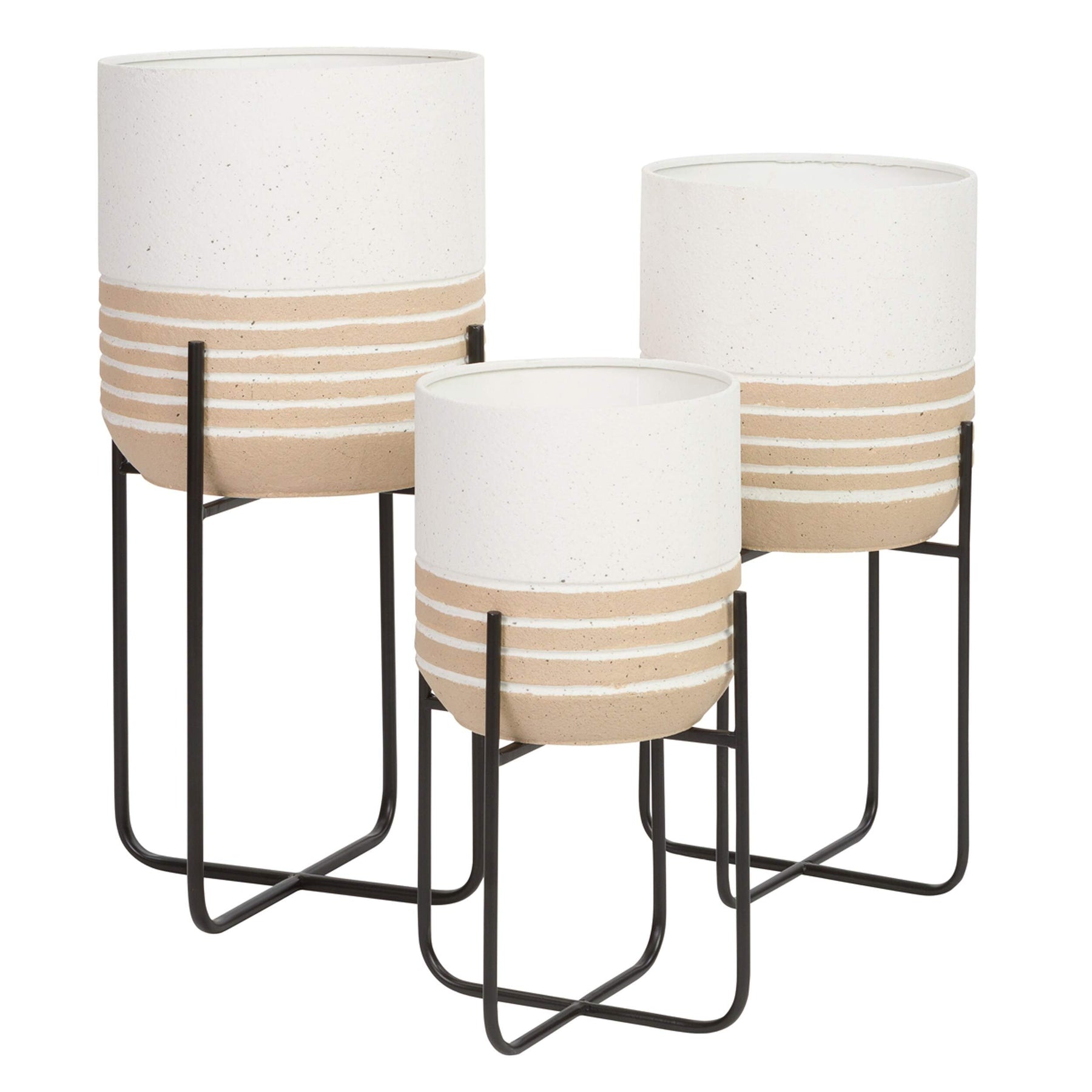 Modern Planters (Set of 3) Gold White Mid-Century Round Metal